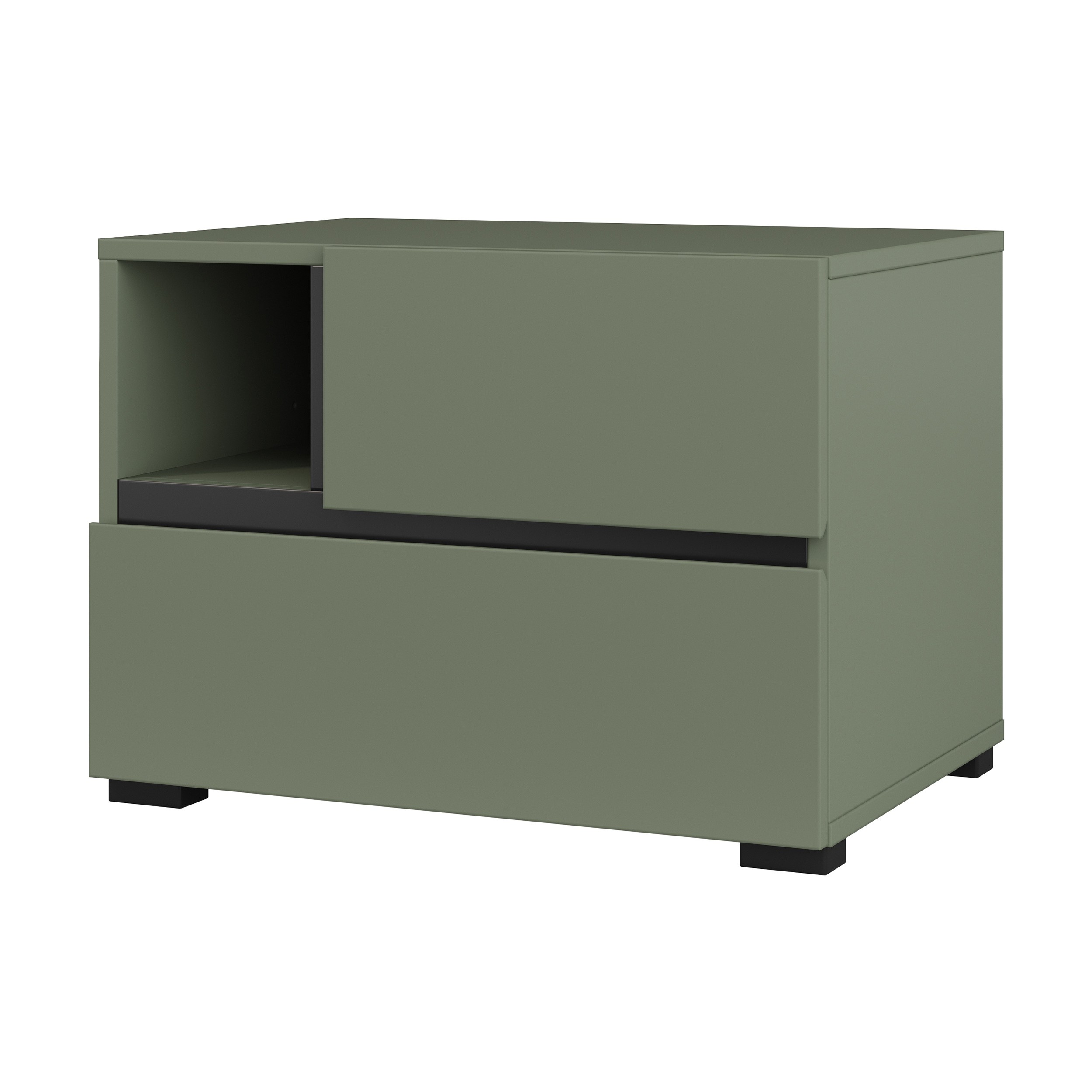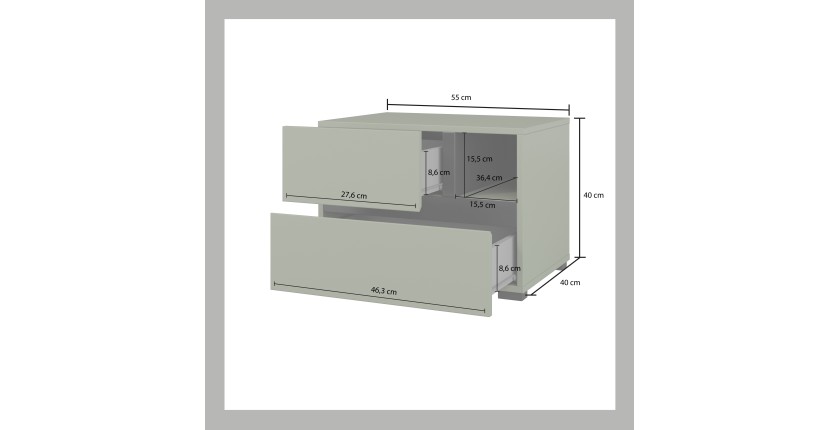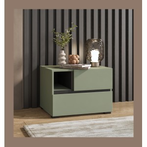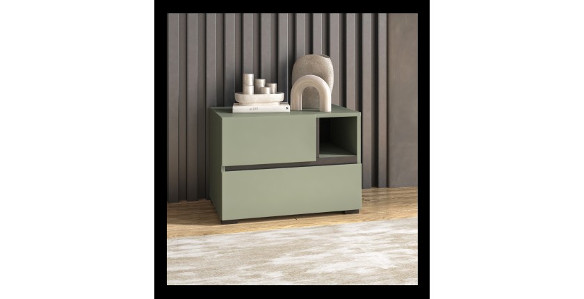 Ajoutez une note naturelle et tendance à votre chambre avec la table de chevet HAVANA en coloris vert sauge et noir. Dotée de 2 tiroirs de rangement et d’une niche ouverte, elle allie design minimaliste et praticité au quotidien.