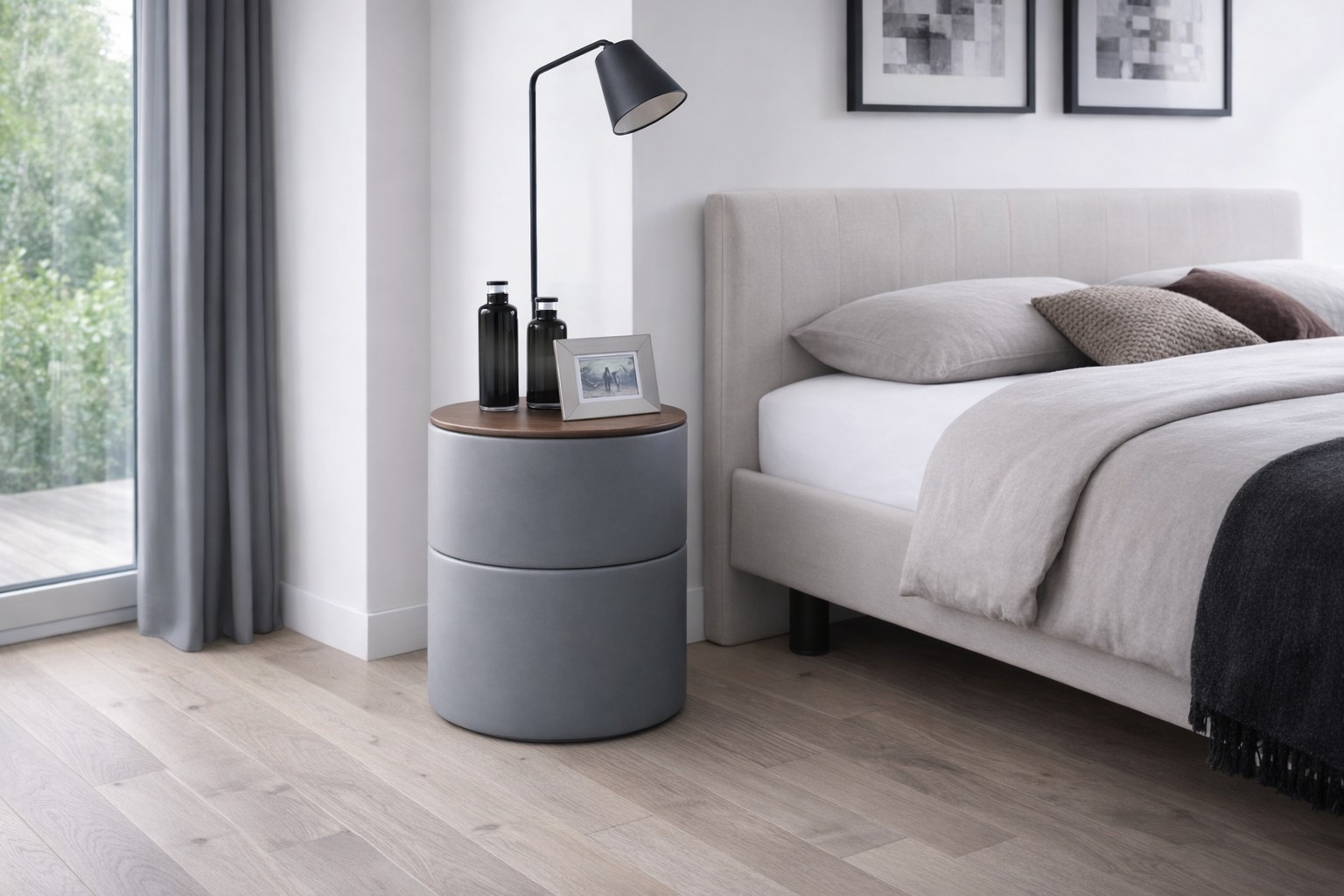 Grâce à sa forme cylindrique originale, cette table de chevet se distingue par son style moderne et minimaliste.