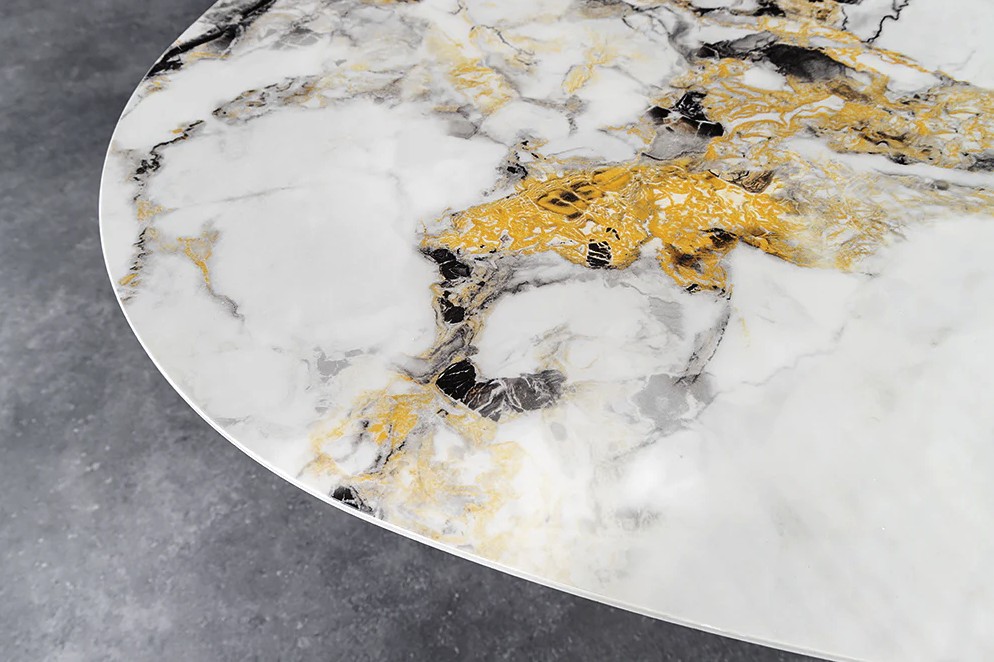 La table AERIS séduit par sa forme ovale et ses finitions brillantes qui mettent en valeur l’élégance du marbre. Son piètement en métal apporte une stabilité optimale et une touche moderne, parfaite pour un intérieur raffiné. C’est le meuble idéal pour sublimer votre salle à manger.