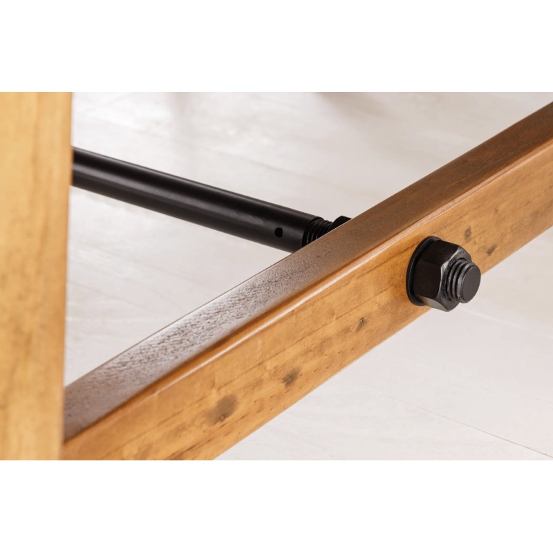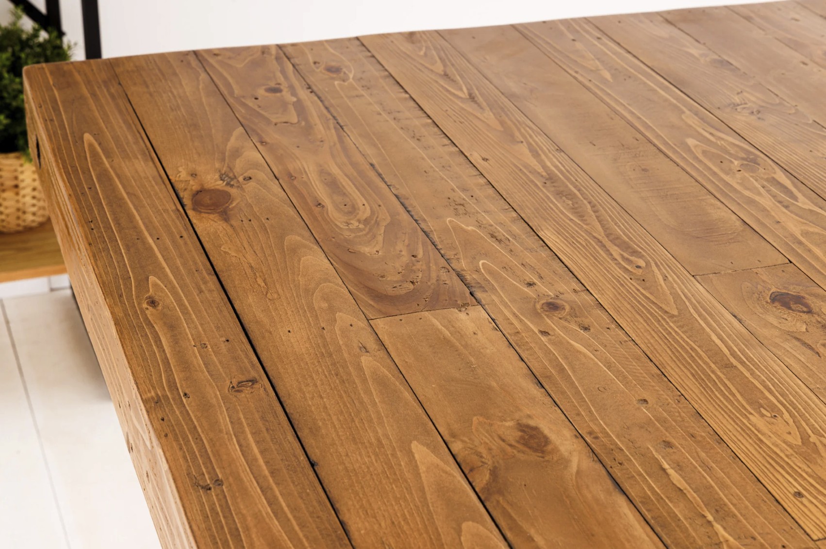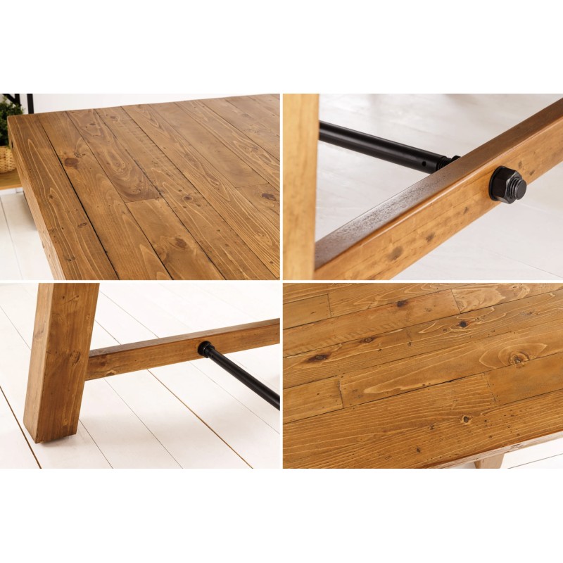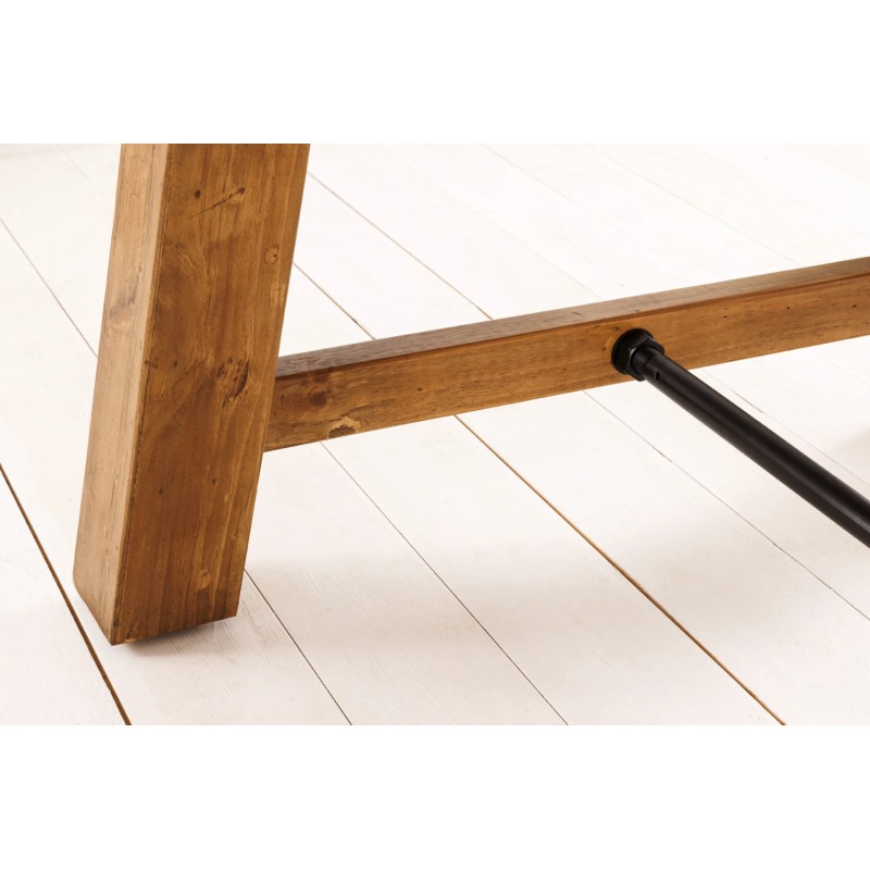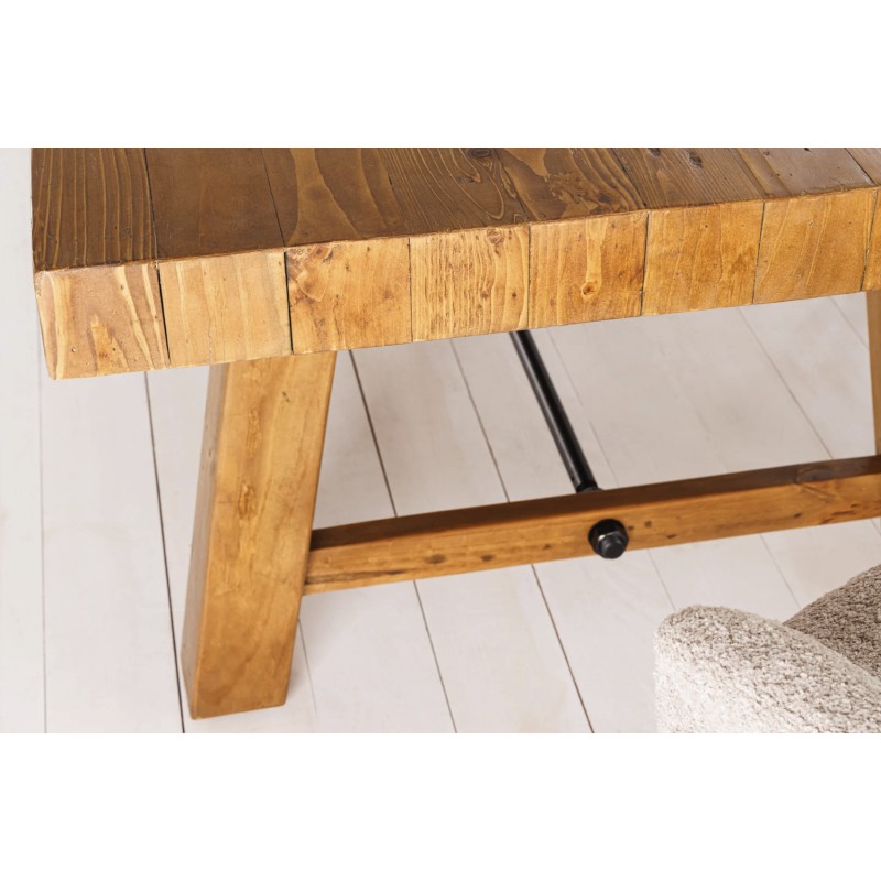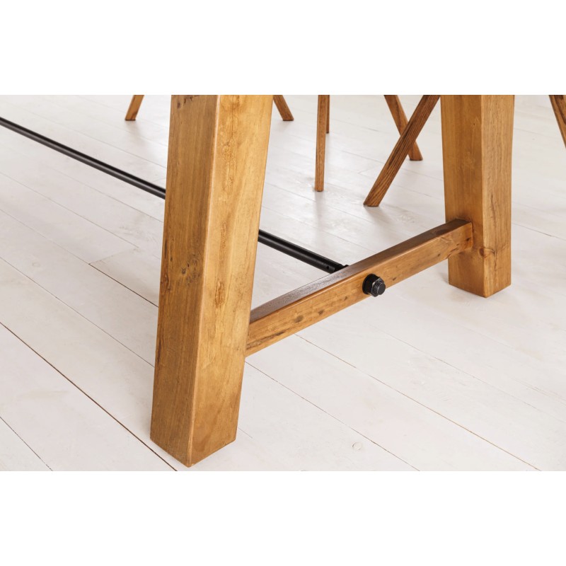 Avec ses dimensions généreuses de 400 cm, la table de salle à manger RANCHO est idéale pour accueillir de grands repas conviviaux. Conçue en bois massif de pin recyclé verni et renforcée par une structure en métal noir, elle allie charme rustique, durabilité et robustesse.