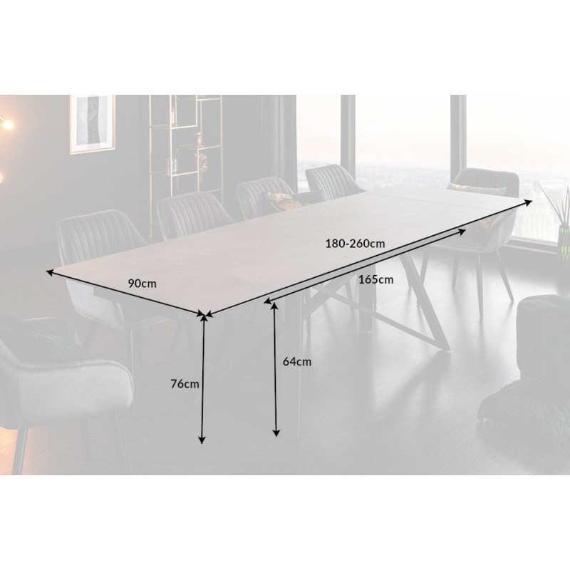 La table LIXOR passe aisément de 180 cm à 220 cm puis jusqu’à 260 cm de longueur, offrant un confort optimal pour accueillir jusqu’à 10 convives. Idéale pour les repas en famille ou entre amis, elle combine design épuré, matériaux haut de gamme et grande stabilité.