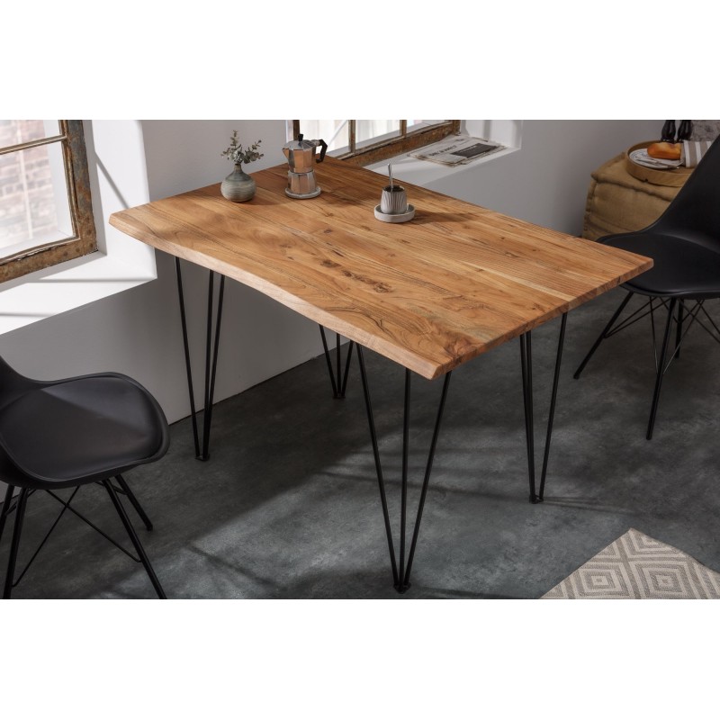 Avec ses 120 cm de longueur, la table ARKAYA est parfaite pour les petits espaces ou les coins repas modernes. Sa conception robuste en bois massif et métal en fait un meuble durable, tandis que son design intemporel s’intègre facilement dans une décoration industrielle, loft ou contemporaine. Elle offre une distance entre les pieds de 110 cm pour un confort optimal.