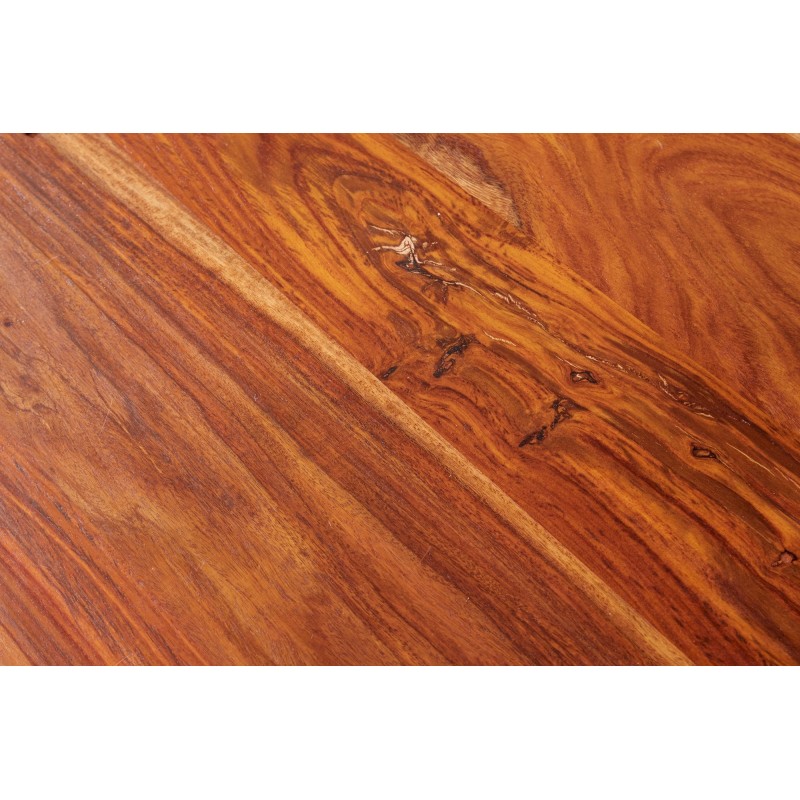 Avec ses pieds de section 7,5 x 7,5 cm et sa distance entre pieds de 115 cm, la table ORKAN séduit par sa stabilité et son allure contemporaine. Sa finition vernie met en valeur les nuances chaleureuses du sheesham, un bois massif reconnu pour sa densité et sa durabilité. Cette pièce centrale donnera un caractère fort à votre salle à manger.