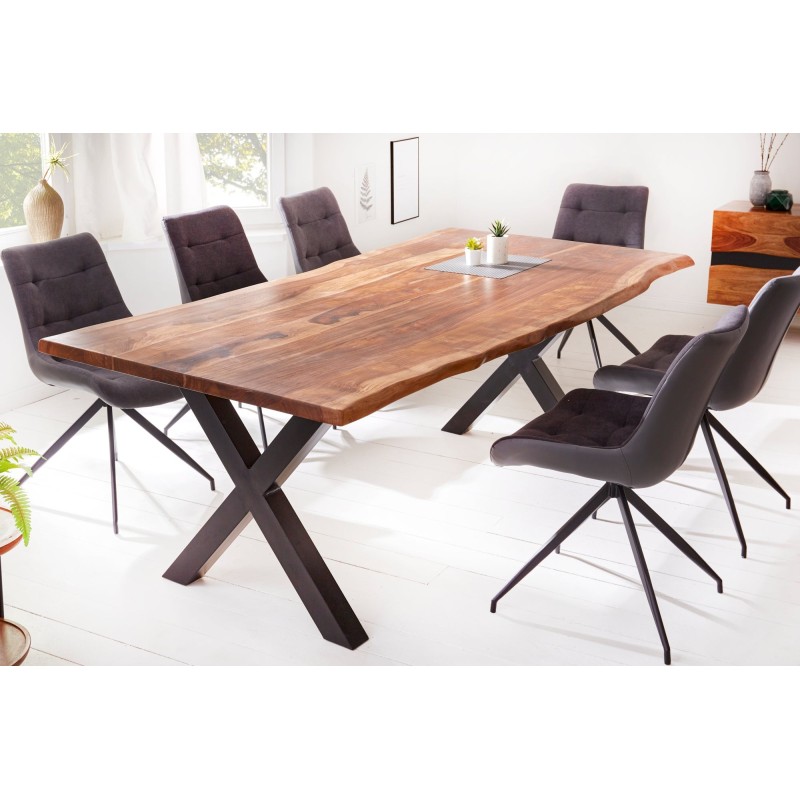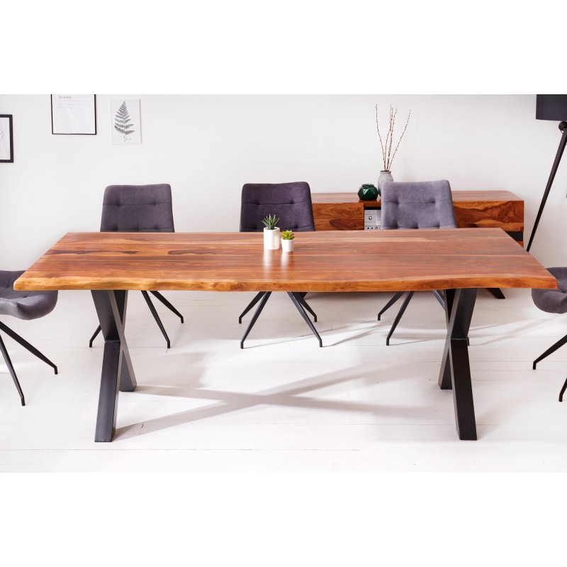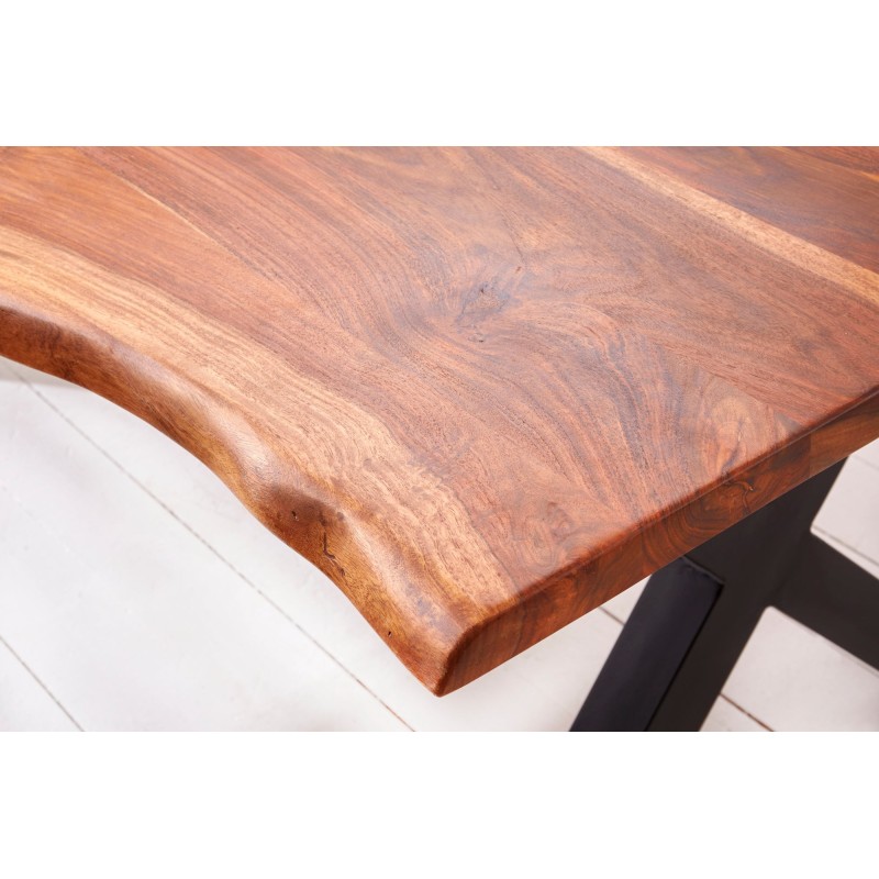 La table de salle à manger ORKAN séduit par son alliance parfaite entre bois massif de sheesham verni et structure en métal noir. Réalisée à la main, chaque pièce révèle un caractère unique grâce à son bord naturel et à ses nuances chaudes. Solide, durable et élégante, elle deviendra la pièce maîtresse de votre salle à manger.