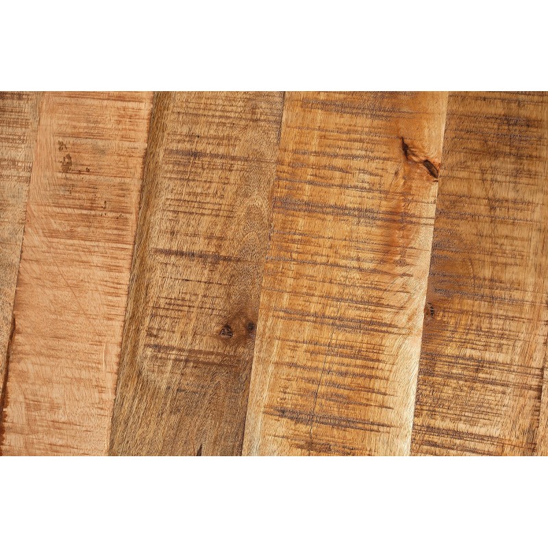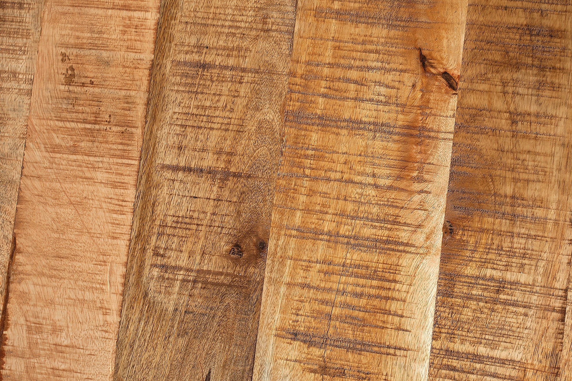 Le design de ce meuble impressionne par son caractère particulièrement individuel et frappant. La surface en planches légèrement ondulées a été pourvue de marques de scie rustiques et rayonne d’un charme qui lui est propre. Les inclusions et les dégradés de couleurs plus foncées donnent à chaque meuble une touche individuelle supplémentaire - attendez-vous à une pièce vraiment unique !