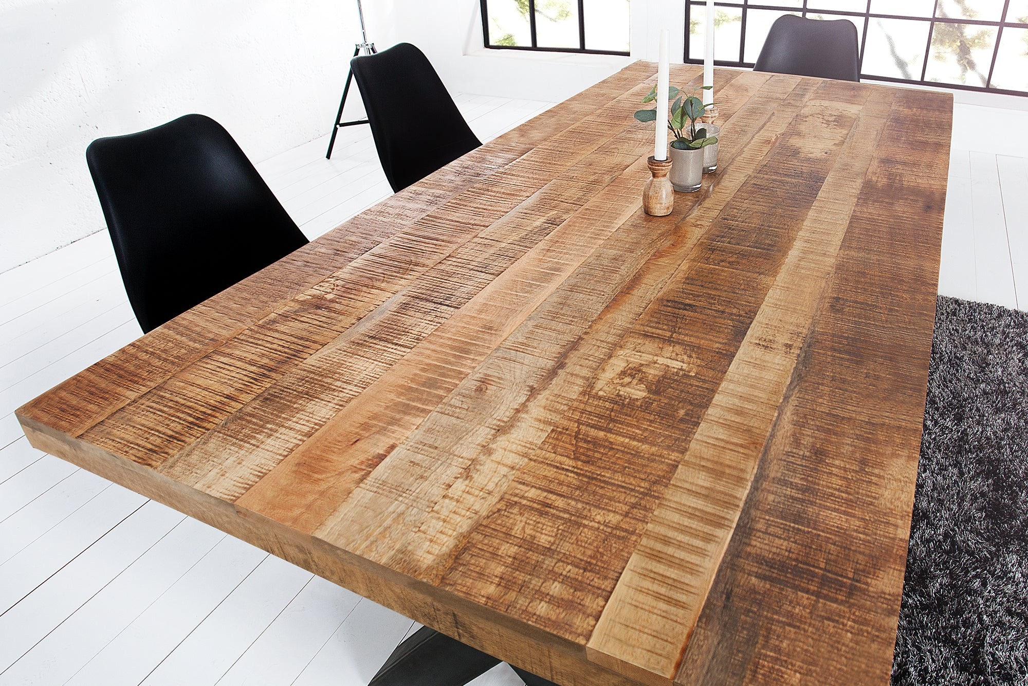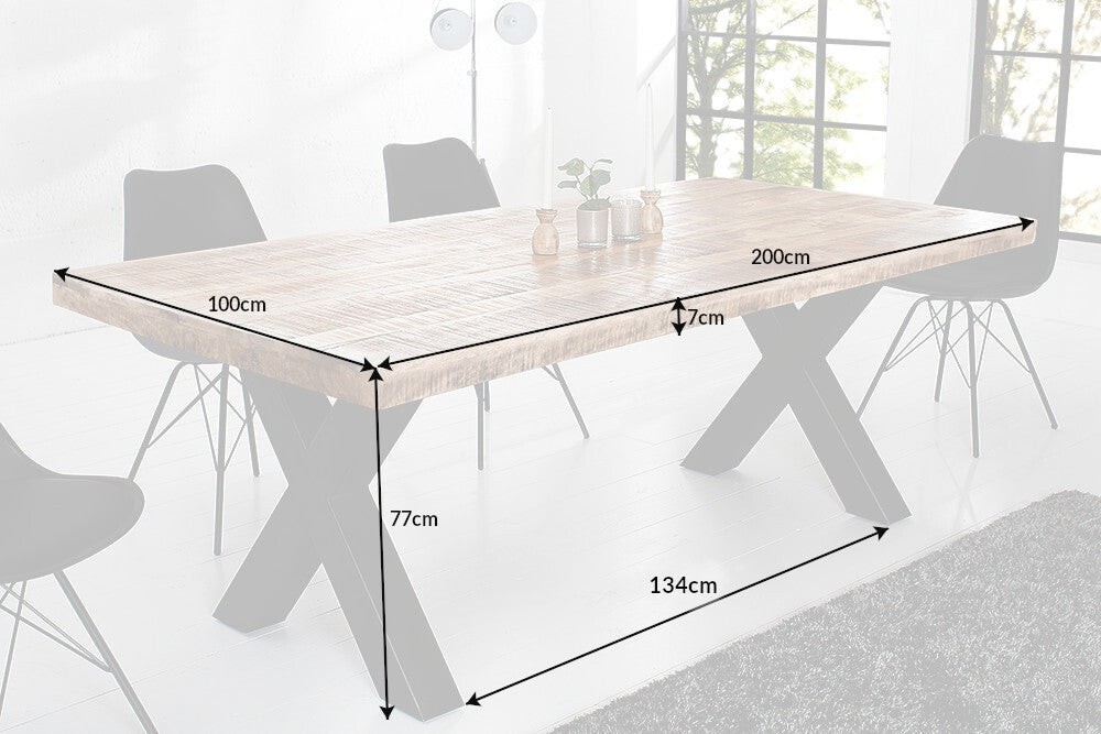 Apportez une touche industrielle et chaleureuse à votre intérieur avec la table de salle à manger LODEN. Conçue en bois massif de manguier verni et soutenue par une structure en métal noir, cette table associe solidité et charme naturel. Son plateau de 200 cm offre un bel espace pour vos repas en famille ou entre amis.