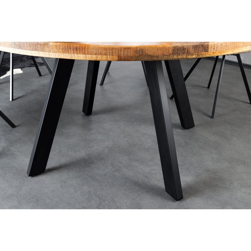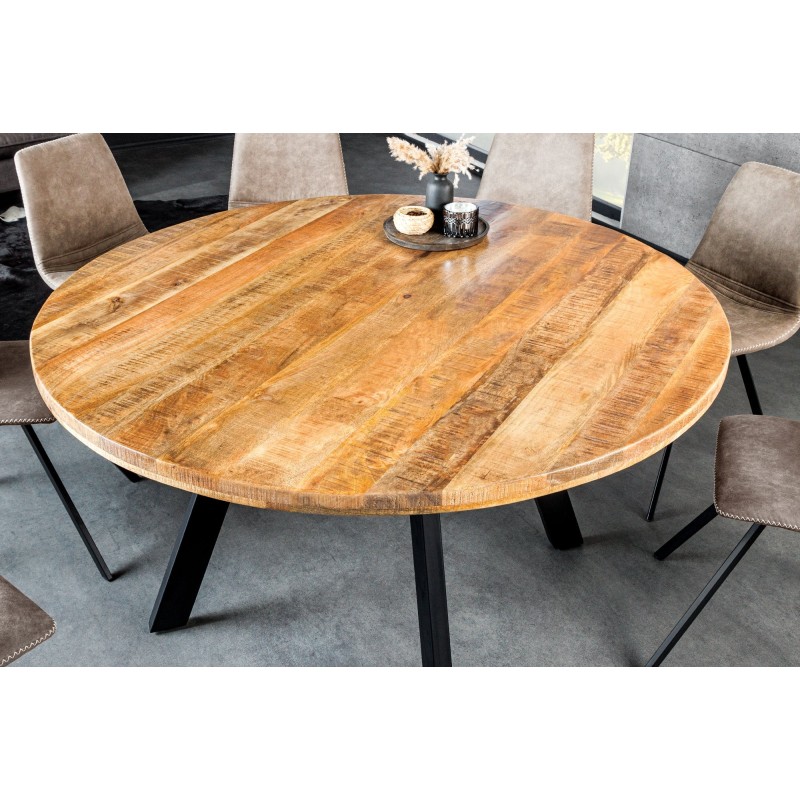 La table de salle à manger LODEN séduit par son alliance harmonieuse entre le bois massif de manguier verni et la structure en métal noir. Son plateau rond de 145 cm offre une convivialité naturelle et un charme brut, idéal pour sublimer un intérieur au style industriel, moderne ou rustique.