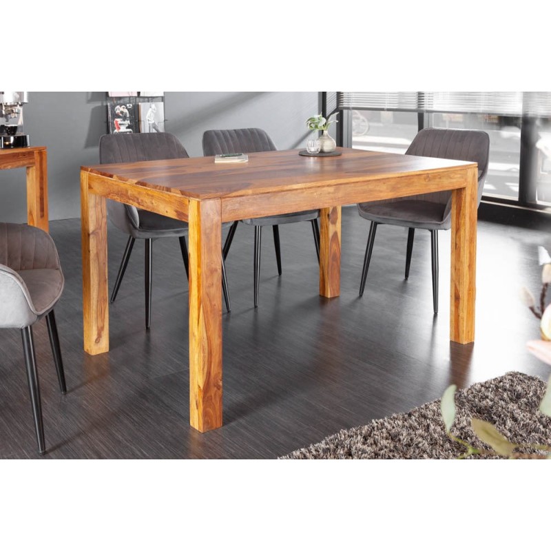 La table TAVINA met à l’honneur le bois massif dans toute sa splendeur. Son plateau épais aux bords droits lui confère une allure solide et imposante, tandis que les nuances naturelles du sheesham — oscillant entre des tons miel, caramel et brun foncé — apportent une richesse visuelle unique. Ce bois noble, légèrement nervuré, apporte une atmosphère accueillante et authentique à la pièce. La structure intégralement en bois massif assure stabilité et cohérence esthétique, pour un rendu harmonieux et intemporel.