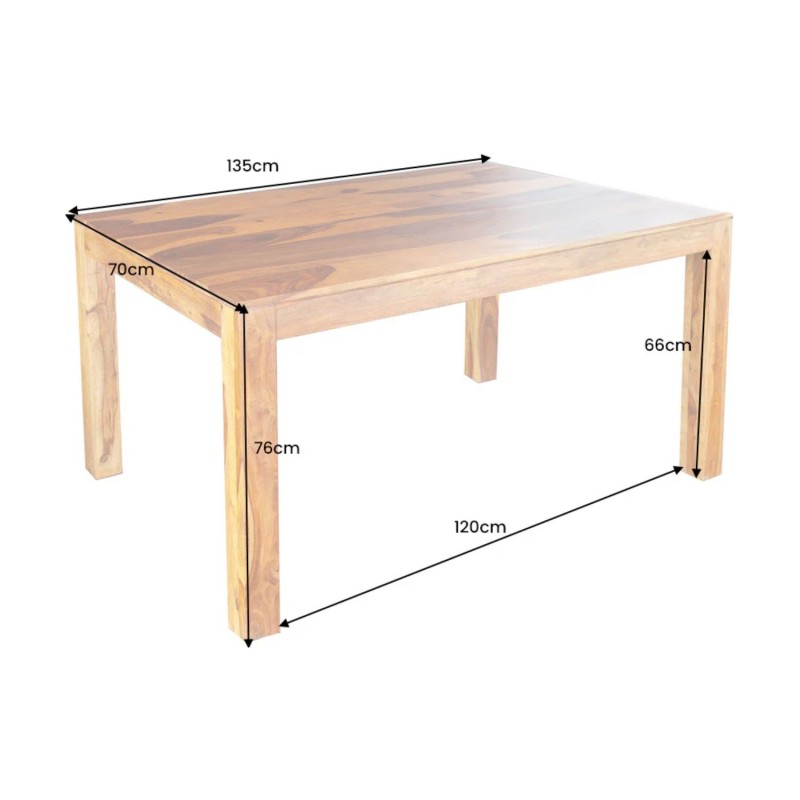 La table de salle à manger TAVINA séduit par son design simple, naturel et plein de caractère. Fabriquée en bois massif de sheesham, une essence rare et prisée pour ses veinures contrastées et sa solidité, elle incarne la beauté brute du mobilier artisanal. Avec sa longueur de 135 cm et son plateau généreux de 97 mm d’épaisseur, cette table est idéale pour les petits espaces souhaitant combiner authenticité et durabilité.