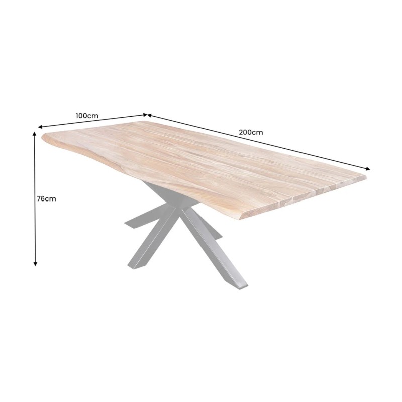 Les meubles en bois sont un produit naturel individuel - chaque pièce unique peut avoir des imperfections, des trous de nœud, des inclusions ou même des fissures. Des différences de dimensions et de dégagements peuvent survenir en raison de la croissance naturelle et de l’élasticité du bois traité. Par conséquent, ces caractéristiques ne sont pas des motifs de plaintes, mais une preuve authentique du caractère naturel de la table.