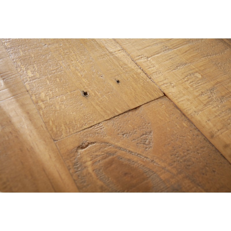 Fabriquée à partir de bois recyclé, chaque table SOLARA est unique, présentant des nuances, irrégularités et traces du temps qui racontent une histoire. La finition vernie du plateau protège la surface tout en valorisant le caractère du bois. La base métallique noire garantit stabilité et modernité, créant un contraste harmonieux avec la texture chaleureuse du bois.