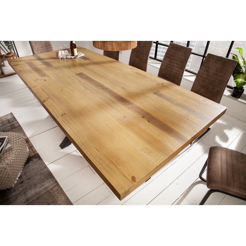 La table de salle à manger SOLARA associe avec élégance le bois de pin recyclé à une structure en métal noir robuste. Son design industriel s’inspire des ateliers d’artisans, mêlant matières brutes et lignes épurées. Avec ses 200 cm de long et son plateau épais de 60 mm, elle impose sa présence dans la pièce tout en conservant un style naturel et authentique.