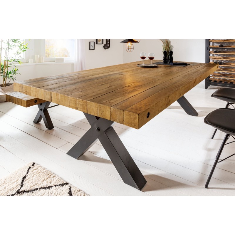La table de salle à manger CAVARA séduit par son alliance subtile entre bois de pin recyclé verni et métal noir. Avec son plateau massif de 80 mm d’épaisseur et sa structure robuste, elle incarne le mobilier industriel par excellence : authentique, durable et plein de caractère. Idéale pour un intérieur moderne ou loft, elle deviendra la pièce maîtresse de votre salle à manger.