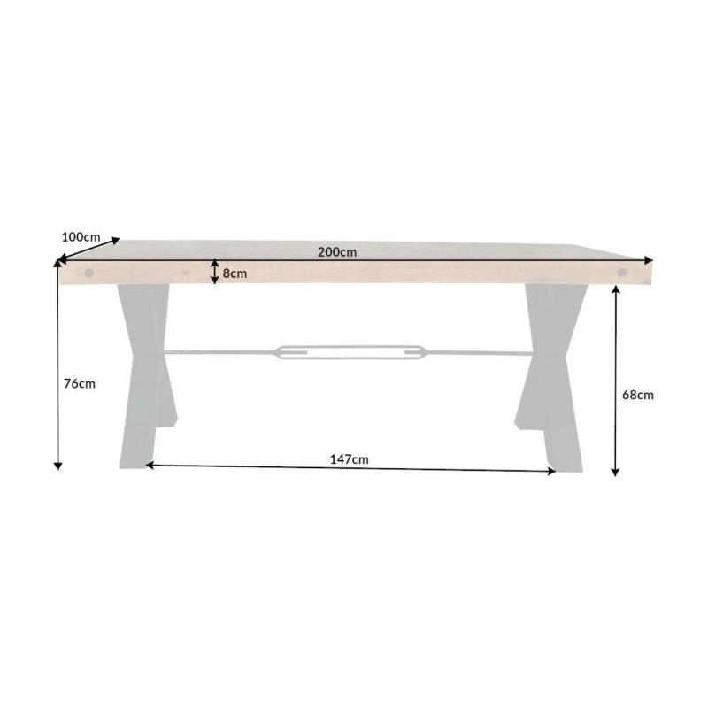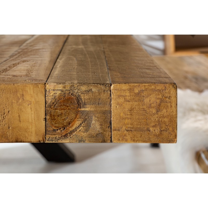 Le plateau en bois recyclé révèle de magnifiques nuances naturelles et un charme vintage unique, mis en valeur par une finition vernie qui protège le bois tout en conservant son authenticité. Les pieds en métal noir apportent un contraste fort et assurent une stabilité parfaite. Sa distance entre les pieds de 147 cm offre un excellent confort d’assise pour vos repas en famille ou entre amis.