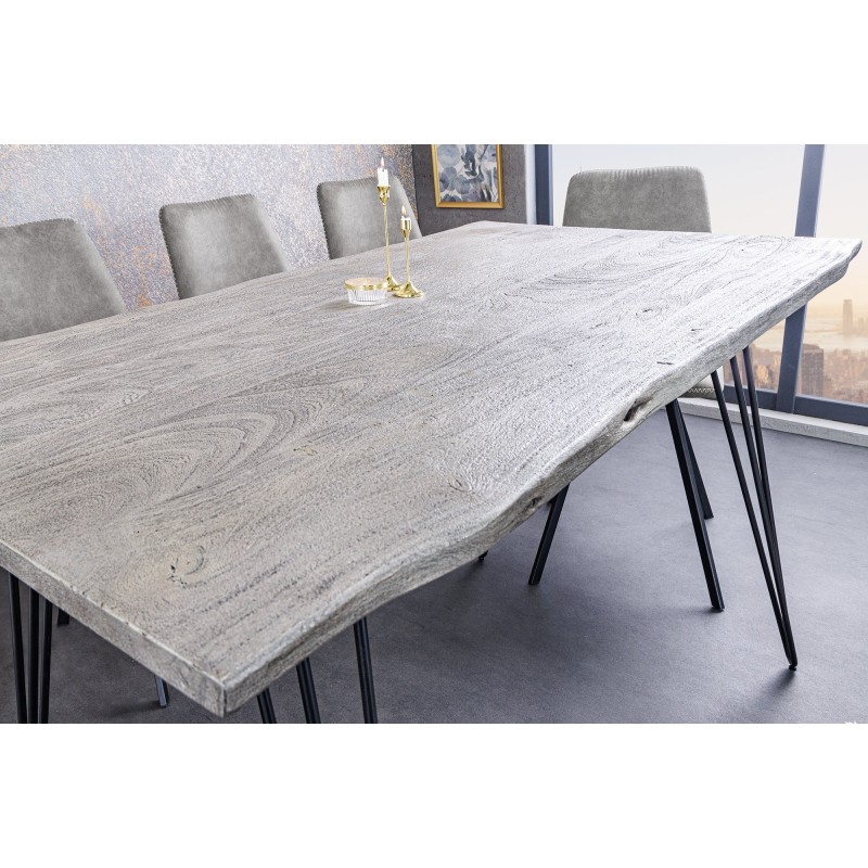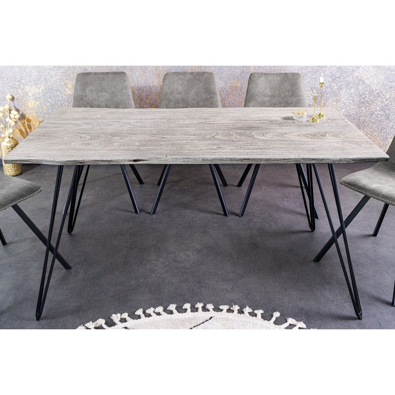 Conçue pour les espaces modernes, cette table mise sur la simplicité des formes et la qualité des matériaux. Son plateau en bois massif se distingue par sa teinte grisée tendance, tandis que ses pieds fins en métal noir lui assurent stabilité et légèreté visuelle. Avec une distance entre les pieds de 129 cm, elle offre un confort d’assise optimal pour 4 à 6 convives.
