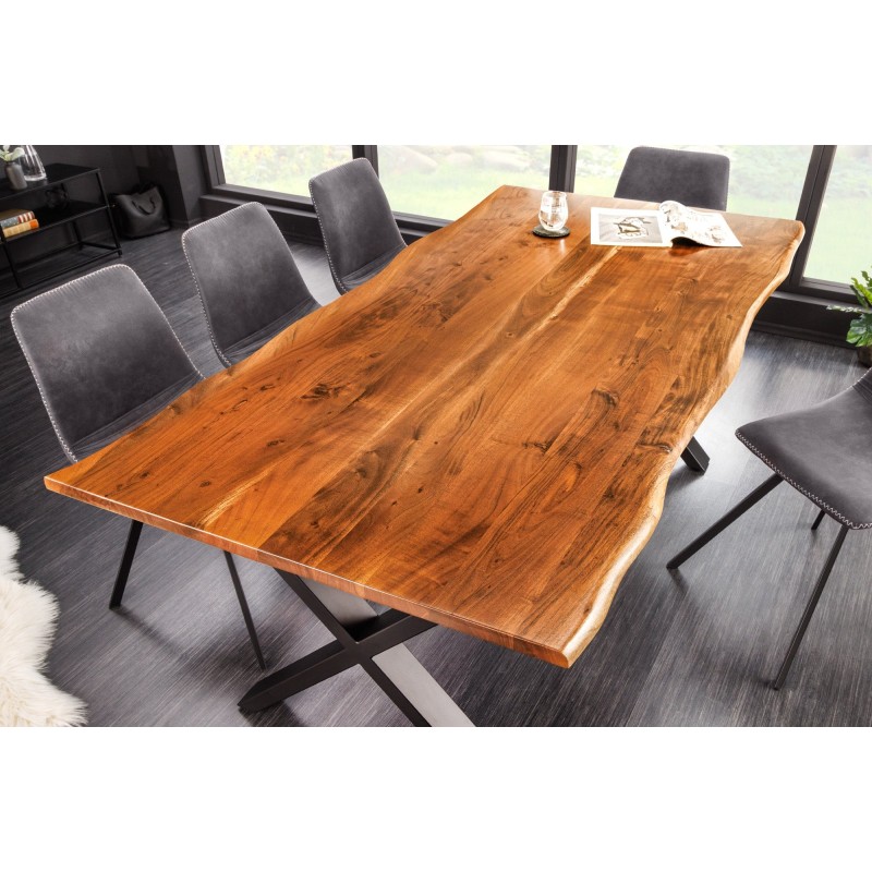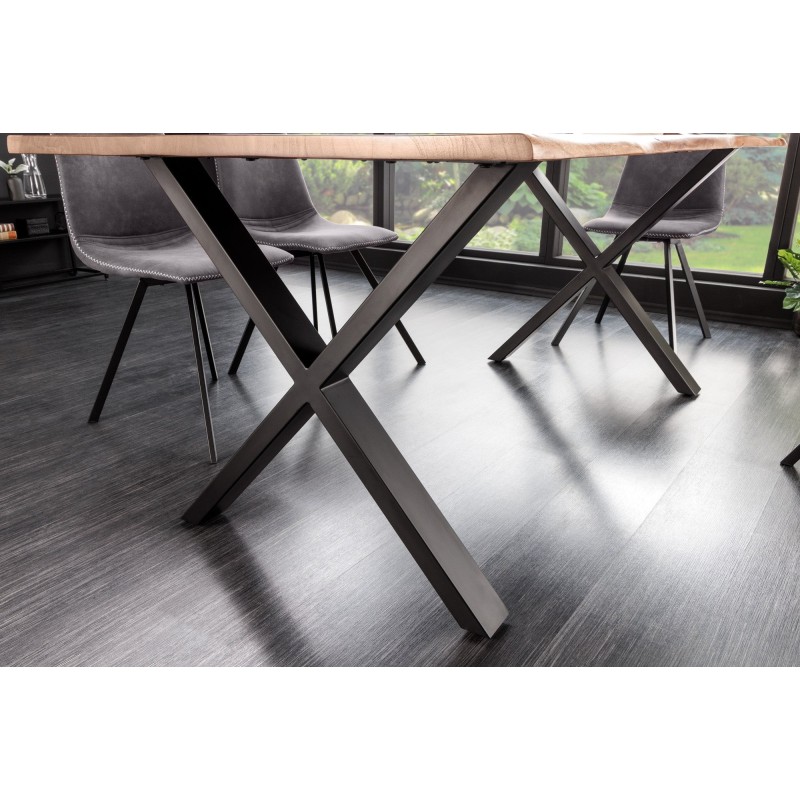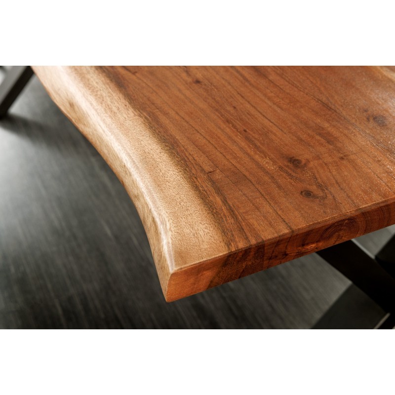 Chaque table ARKAYA raconte une histoire à travers les nuances et les irrégularités naturelles du bois d’acacia. Son épais plateau de 26 mm repose sur une structure en métal noir au design croisé, garantissant une stabilité optimale tout en ajoutant une touche graphique à l’ensemble. Ce modèle s’inscrit dans une décoration à l’esprit industriel et contemporain.