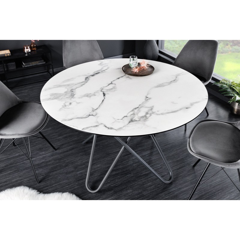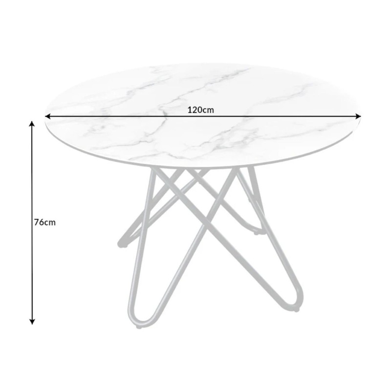 Apportez une touche de raffinement à votre salle à manger avec la table BAUMA 120 cm. Son plateau en céramique effet marbre blanc repose sur une structure en métal noir élégante et stable. Ce mariage de matériaux nobles et modernes en fait une pièce de choix pour un intérieur design et lumineux.