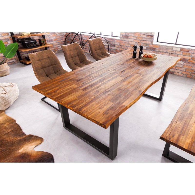 Apportez une touche d’authenticité à votre intérieur avec la table NALKO 160 cm. Son plateau en bois d’acacia huilé révèle toute la beauté des nervures naturelles du bois, tandis que ses pieds en métal noir en forme de U assurent stabilité et style. Parfaite pour un espace de vie moderne ou industriel, cette table deviendra rapidement la pièce maîtresse de votre salle à manger.