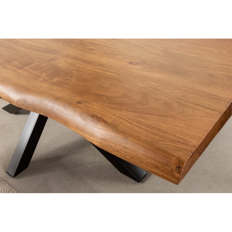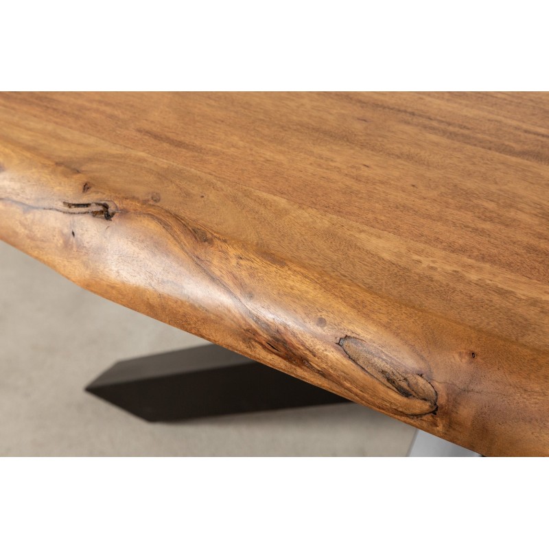 Chaque exemplaire de la table ARKAYA est une véritable œuvre de la nature. Les bords irréguliers du plateau rappellent la forme originale du bois, offrant un rendu authentique et plein de charme. Grâce à ses dimensions généreuses, elle peut accueillir confortablement jusqu’à 8 convives pour des repas conviviaux et stylés.
