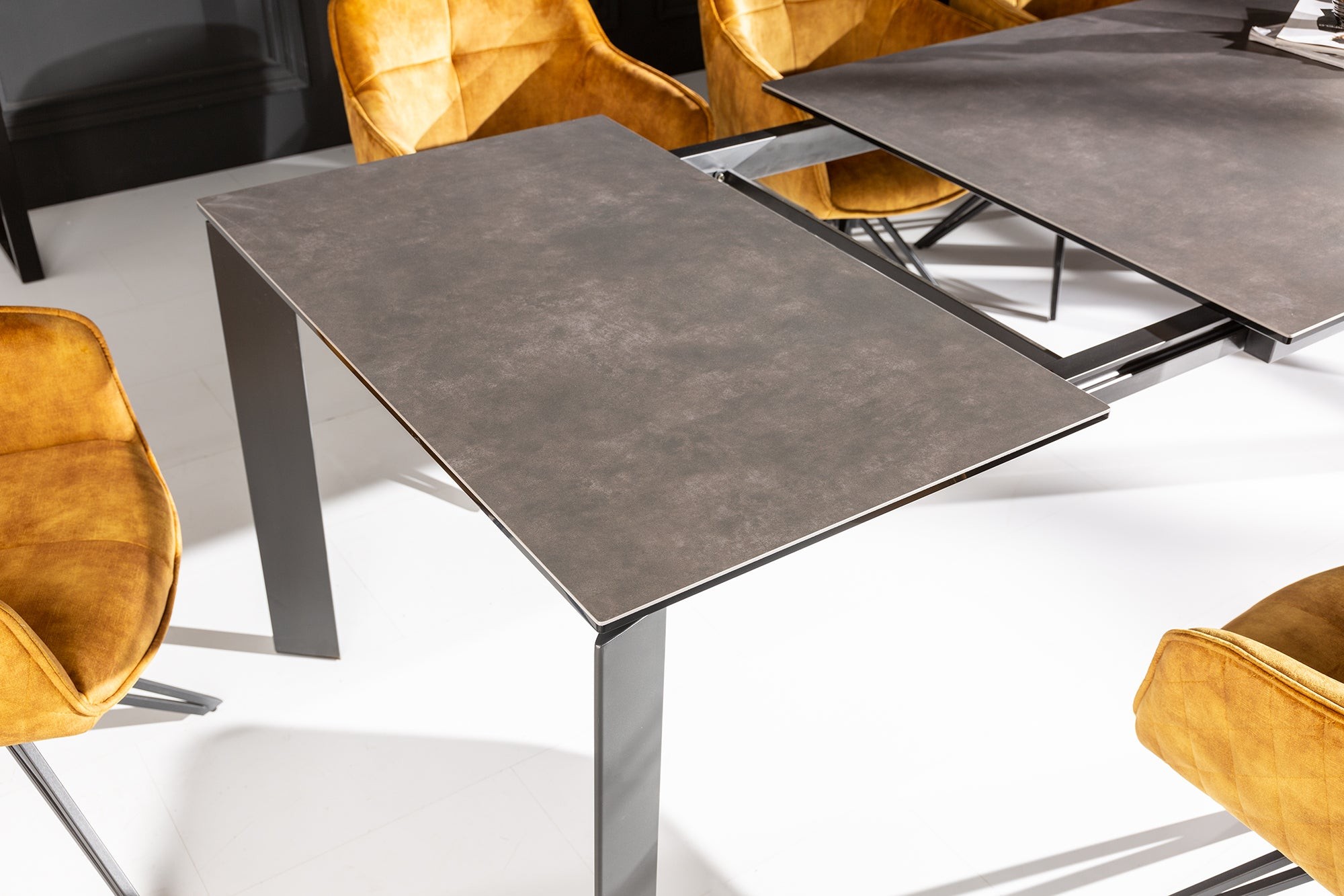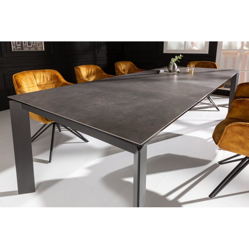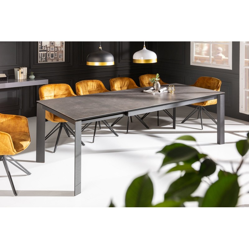 Avec son design raffiné et ses finitions haut de gamme, la table SIGRO 180–240 cm incarne la modernité et la praticité à la perfection. Son plateau en céramique anthracite associé à une base en métal assorti lui confère un charme contemporain tout en garantissant une solidité exemplaire.
