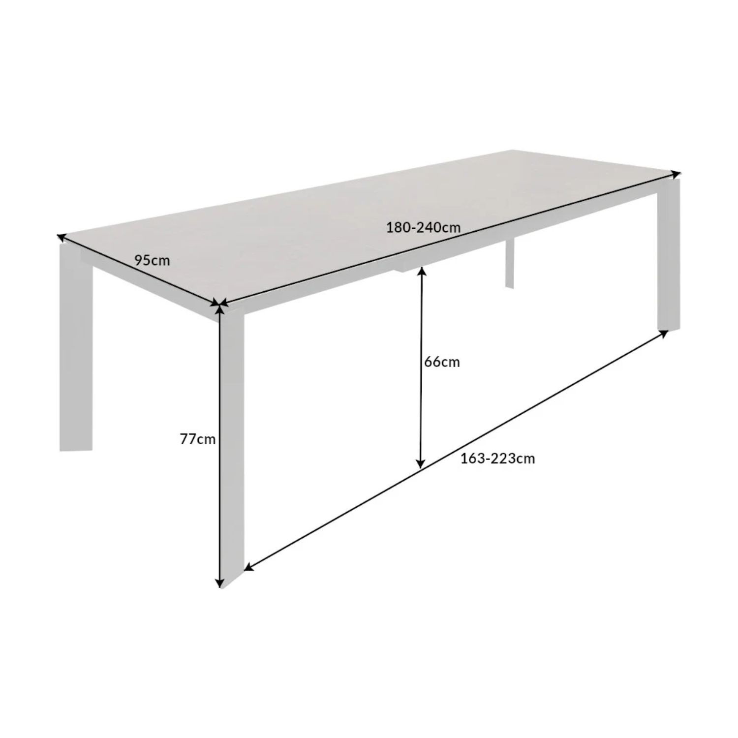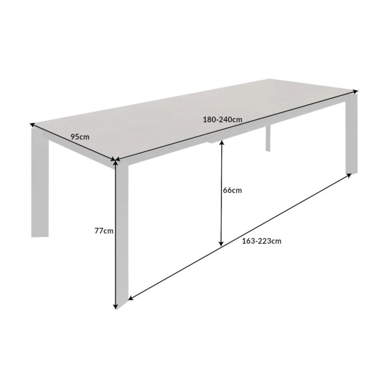 Grâce à son système d’extension fluide et discret, la table SIGRO passe aisément de 180 à 240 cm, idéale pour accueillir de 6 à 10 convives. Son plateau en verre trempé surmonté d’une fine couche de céramique de 14 mm d’épaisseur résiste parfaitement à la chaleur, aux rayures et aux chocs du quotidien. Les pieds en métal anthracite assurent stabilité et modernité, tandis que la distance généreuse entre les pieds (jusqu’à 223 cm) offre un excellent confort d’assise.
