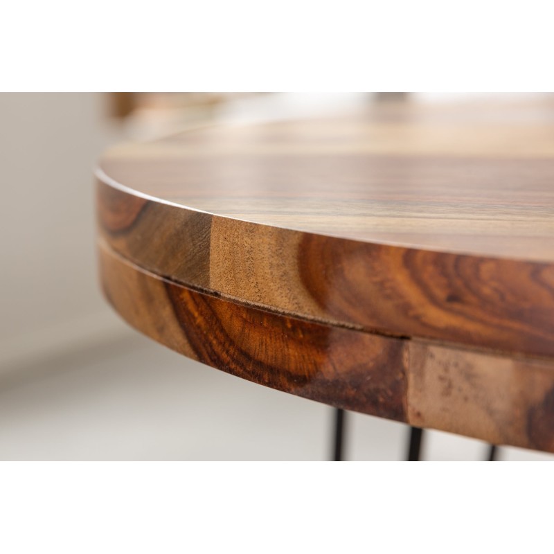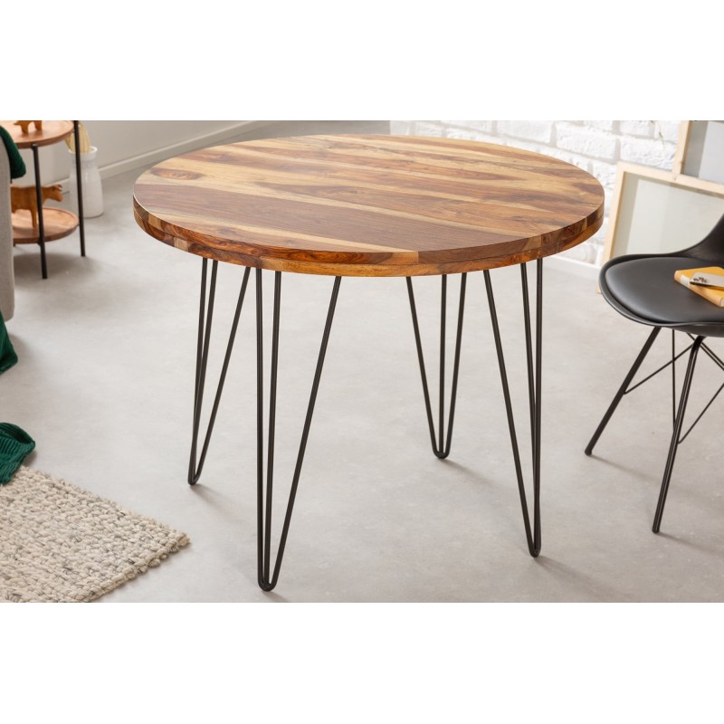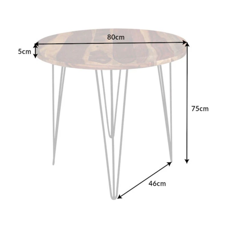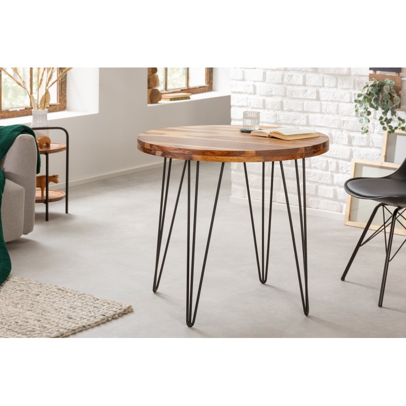 Apportez à votre intérieur une touche authentique et industrielle avec la table ORBO 80 cm. Son plateau en bois de Sheesham verni, aux teintes chaudes et naturelles, s’associe harmonieusement à une structure en métal noir robuste pour un look moderne et intemporel.