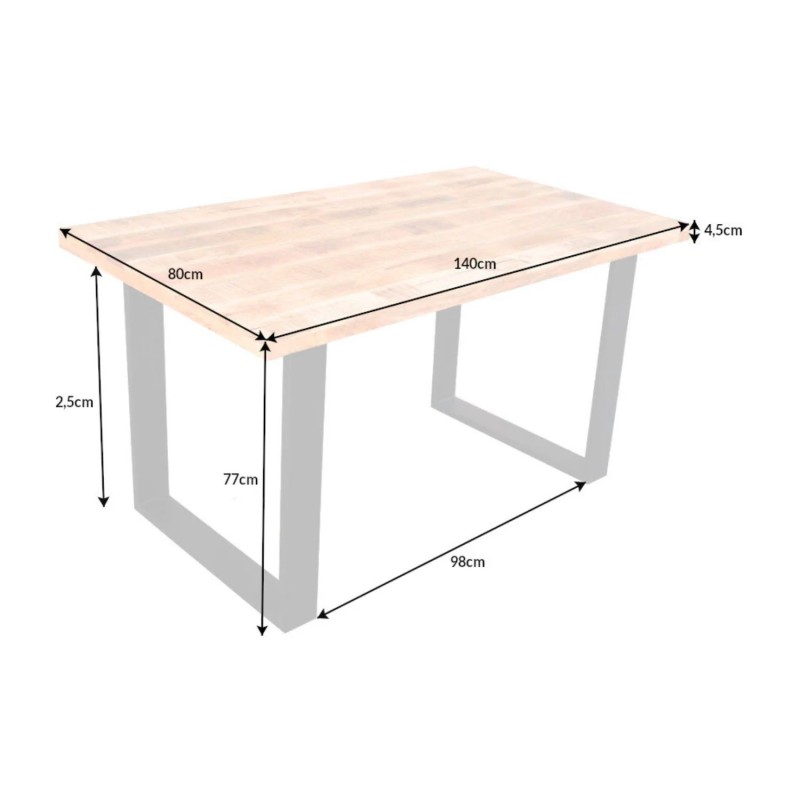 Avec un plateau épais de 45 mm et une structure métallique solide, la LODEN 140 cm garantit stabilité et durabilité. Les pieds de 9,5 × 2,5 cm et la distance entre les pieds de 98 cm assurent un confort optimal pour vos repas du quotidien comme pour vos moments de convivialité.