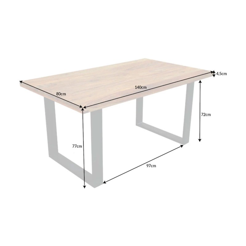 Avec un plateau épais de 45 mm et des pieds en métal (9,5 × 2,5 cm), la table LODEN 140 cm garantit une stabilité irréprochable. La distance entre les pieds de 97 cm offre un confort optimal pour accueillir jusqu’à 6 personnes. Ce modèle compact s’adapte aussi bien à une salle à manger qu’à un espace cuisine ouvert.