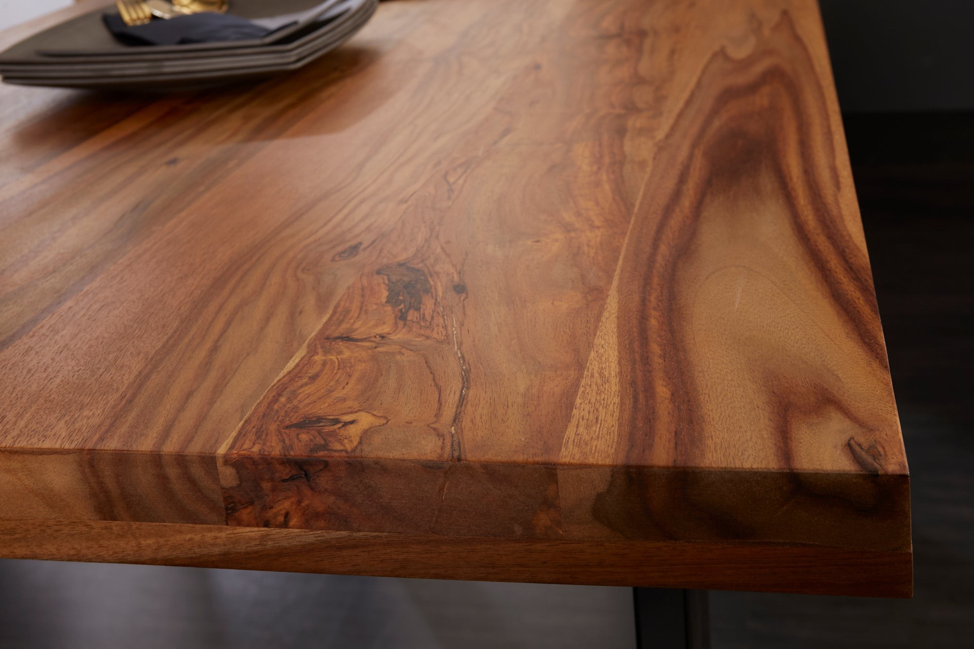Les meubles en bois sont des produits naturels individuels : chaque pièce unique peut présenter des irrégularités, des nœuds, des inclusions ou même des fissures. Des différences de dimensions et de jeux peuvent apparaître en raison de la croissance naturelle et de l'élasticité du bois transformé. Ces caractéristiques ne constituent donc pas des motifs de réclamation, mais une preuve authentique du caractère naturel des meubles.