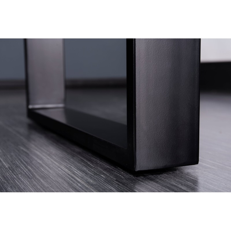 La table LODEN 120 cm séduit par son design industriel et ses matériaux nobles. Son plateau en bois massif de sheesham verni met en valeur les nuances et le veinage unique du bois, tandis que ses pieds en U en métal noir apportent une touche contemporaine et robuste à votre intérieur.