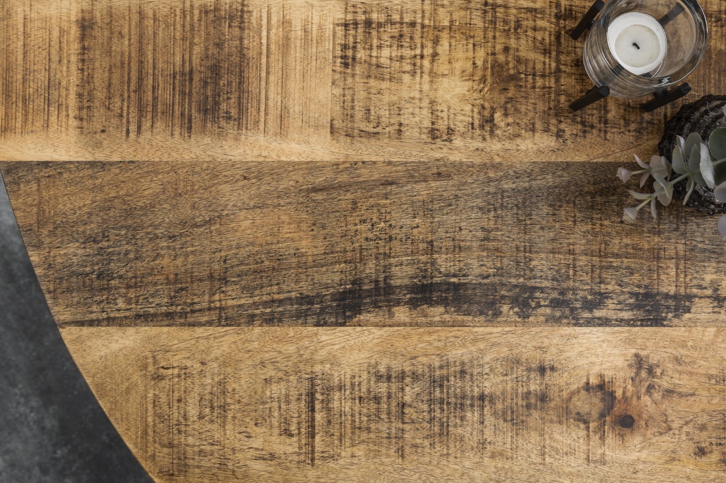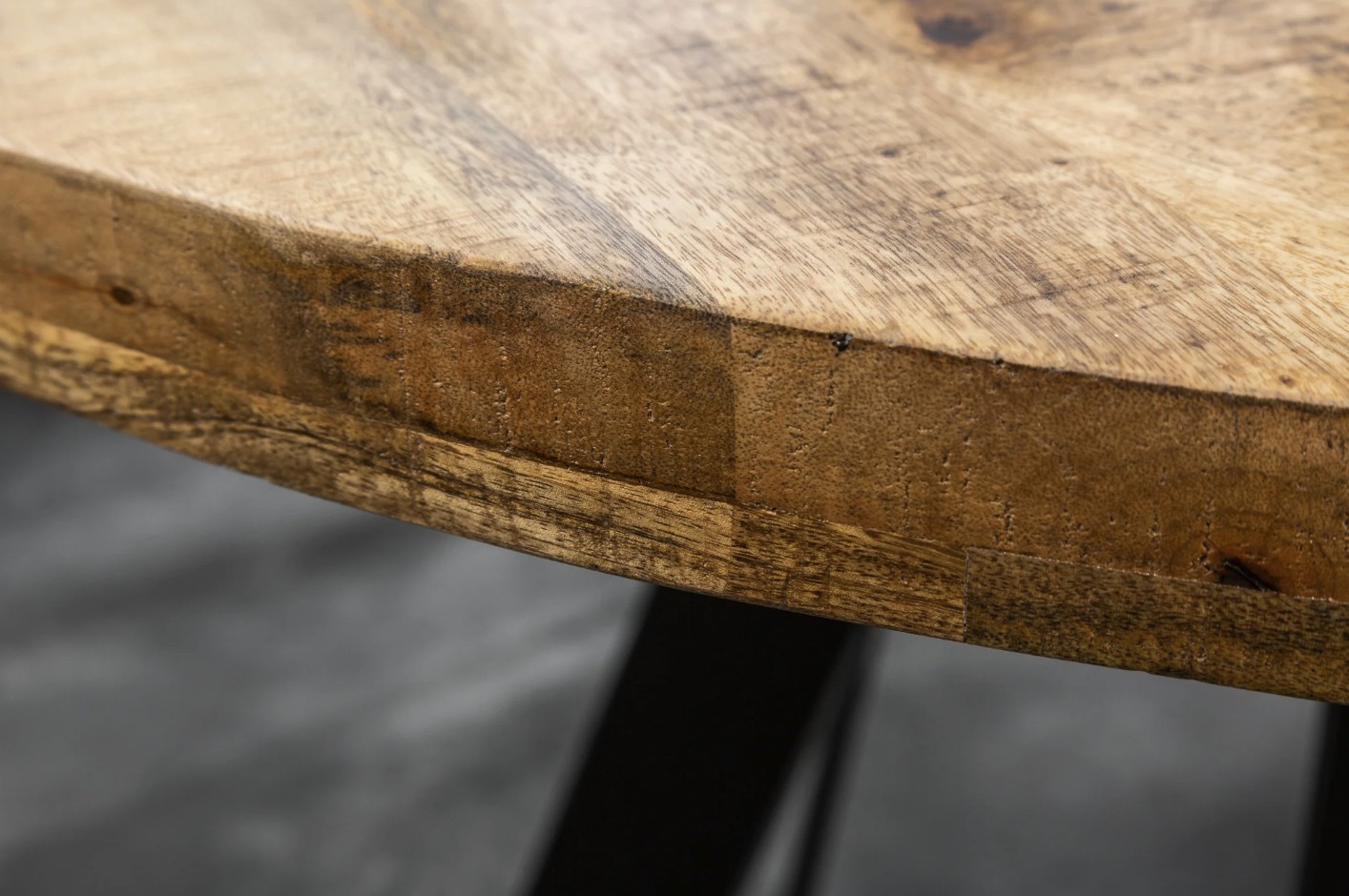 Grâce à son plateau en bois massif de manguier de 45 mm d’épaisseur et à sa structure en métal noir, cette table combine solidité, élégance et durabilité. Ses finitions naturelles et son design équilibré en font un choix idéal pour une salle à manger à la fois authentique et tendance.