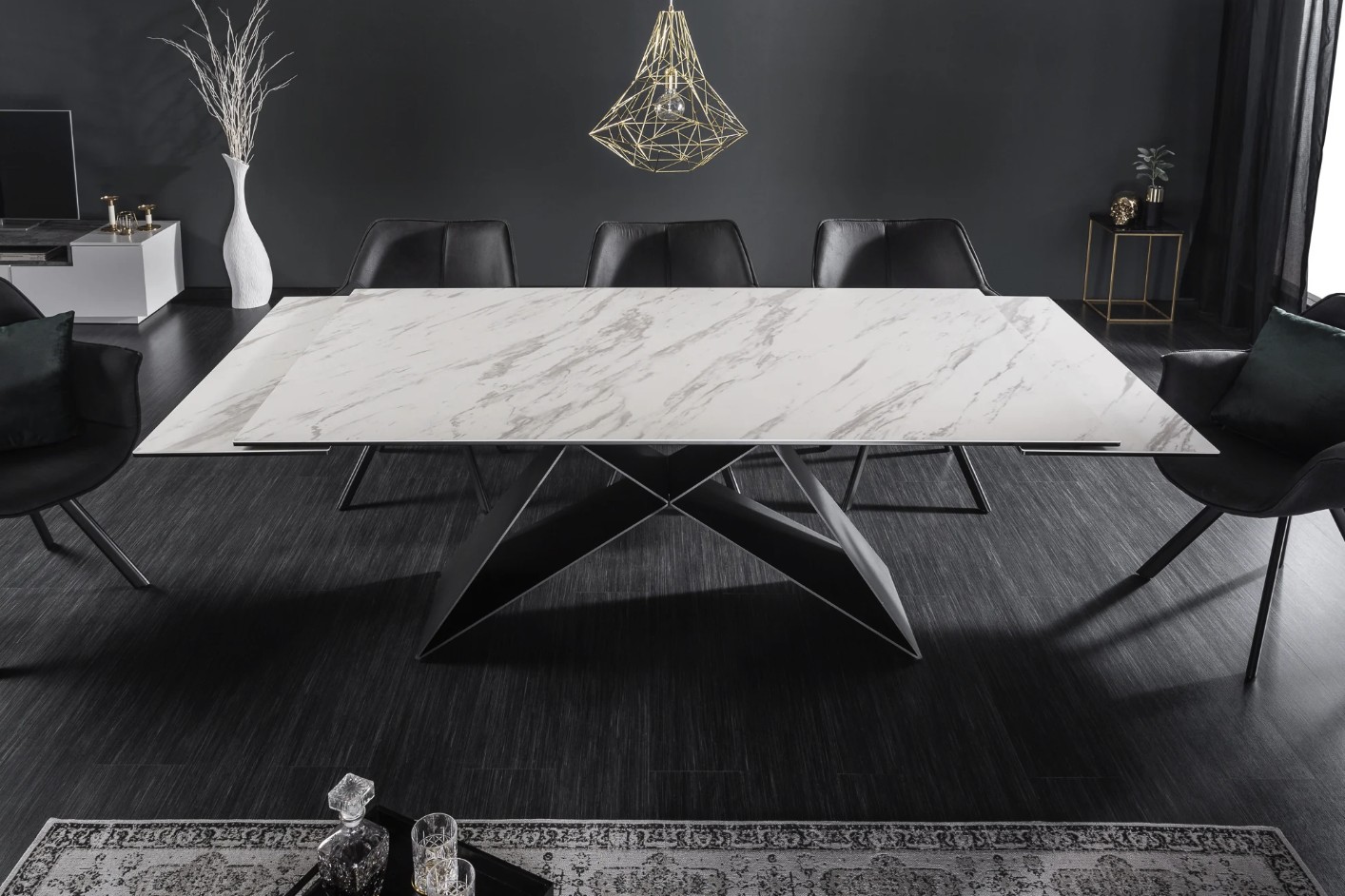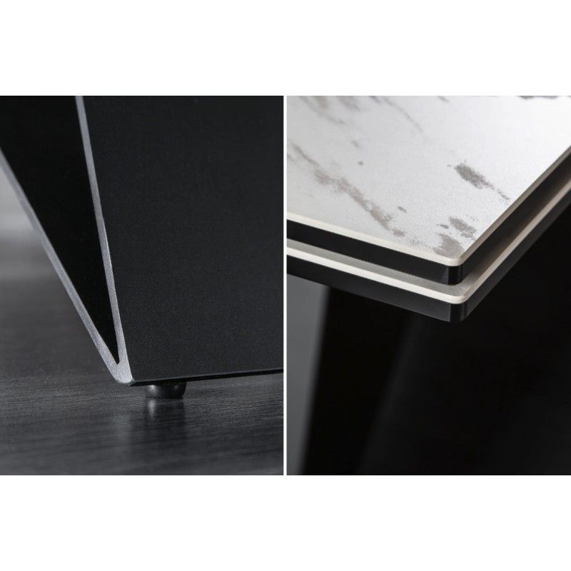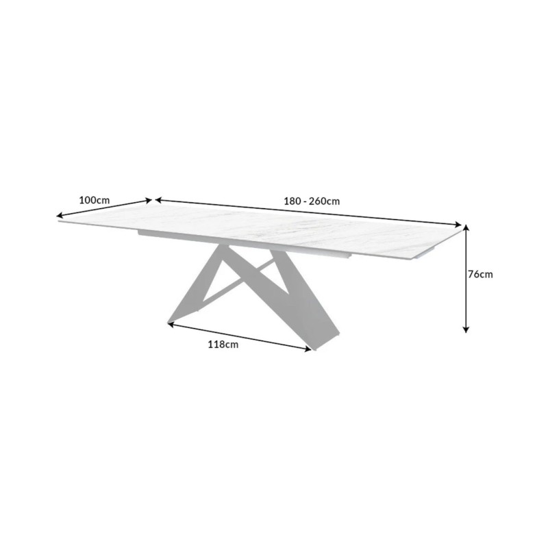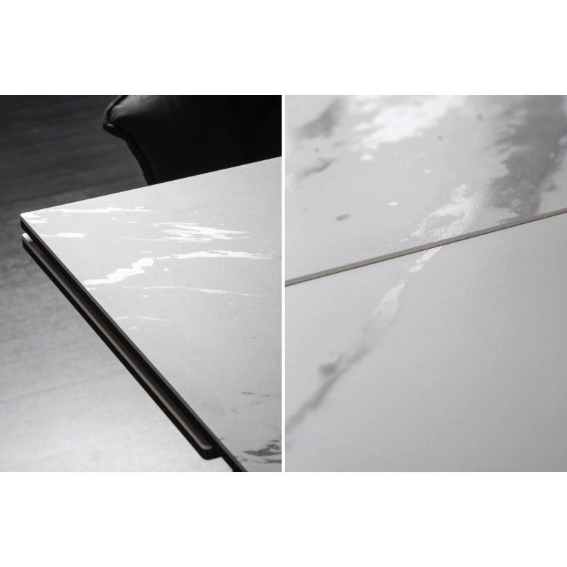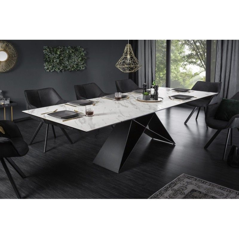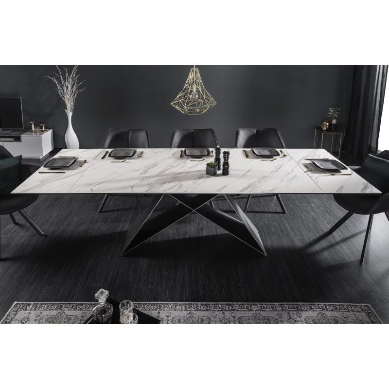Alliant élégance et fonctionnalité, la table de salle à manger ATARA est la pièce idéale pour sublimer un intérieur contemporain. Son plateau en céramique effet marbre blanc repose sur une structure en métal noir, créant un contraste chic et harmonieux. Grâce à son système d’allonges, elle passe aisément de 180 à 260 cm, parfaite pour accueillir jusqu’à 10 convives en toute convivialité.