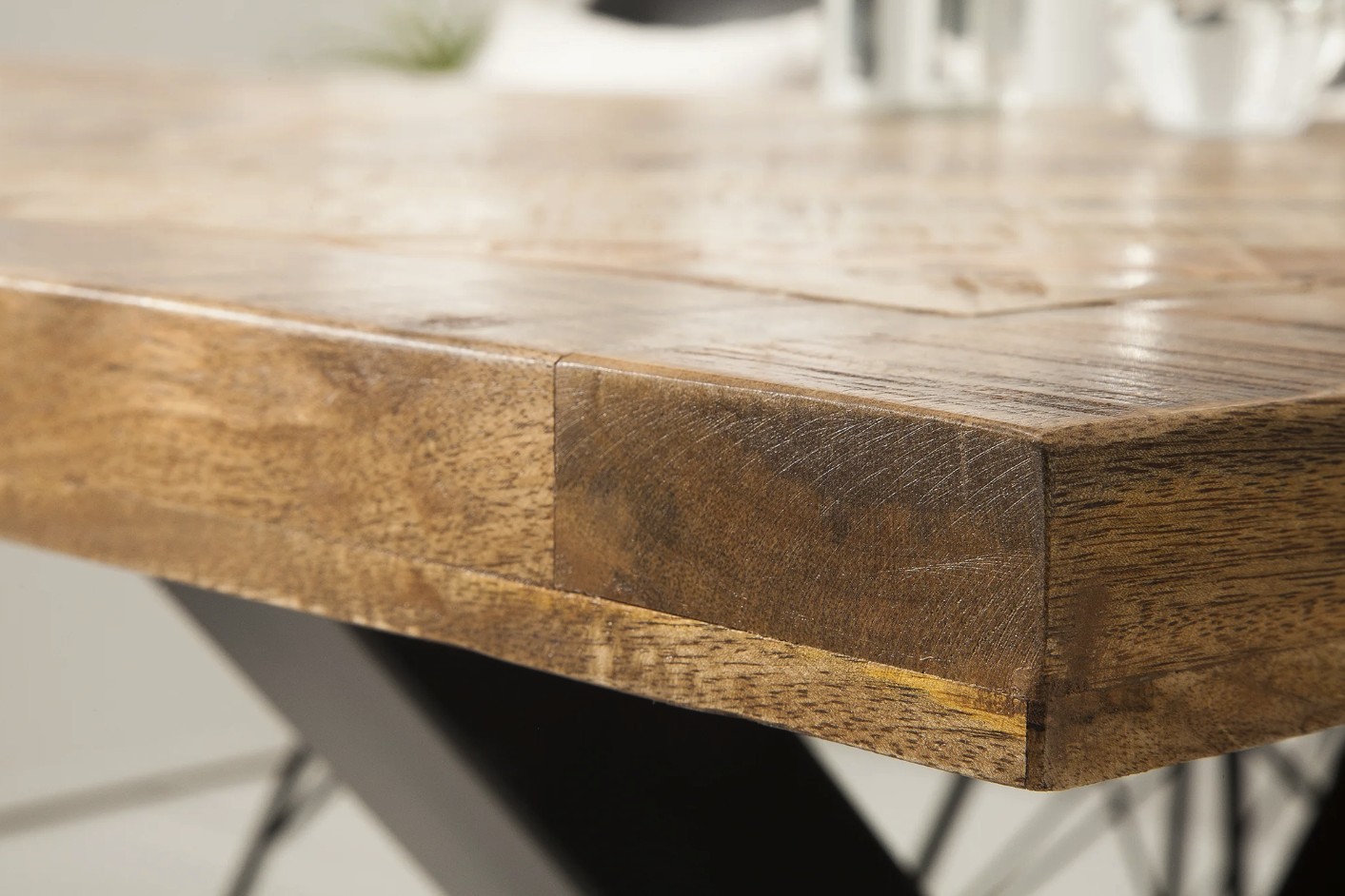 Chaque pièce est unique et magnifique Les meubles en bois sont des produits naturels individuels : chaque pièce unique peut présenter des irrégularités, des nœuds, des inclusions ou même des fissures. Des différences de dimensions et de jeux peuvent apparaître en raison de la croissance naturelle et de l'élasticité du bois transformé. Ces caractéristiques ne constituent donc pas des motifs de réclamation, mais une preuve authentique du caractère naturel des meubles.