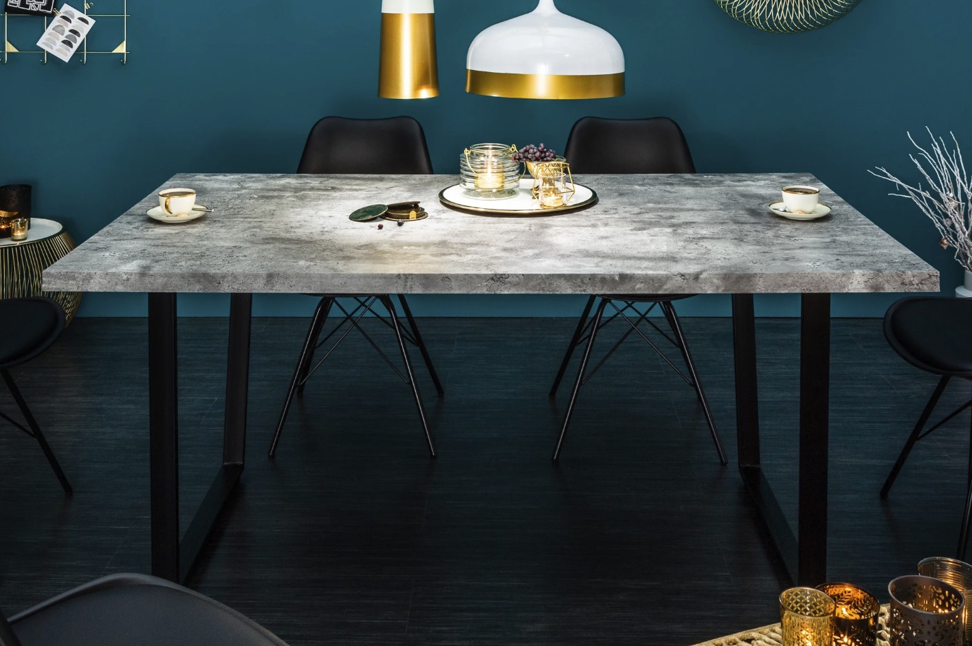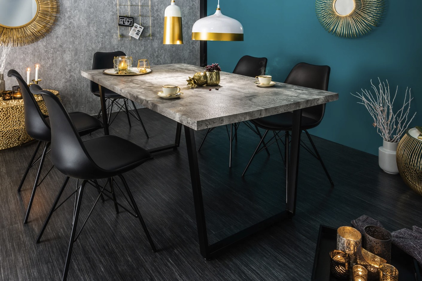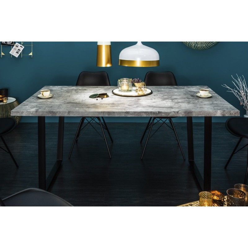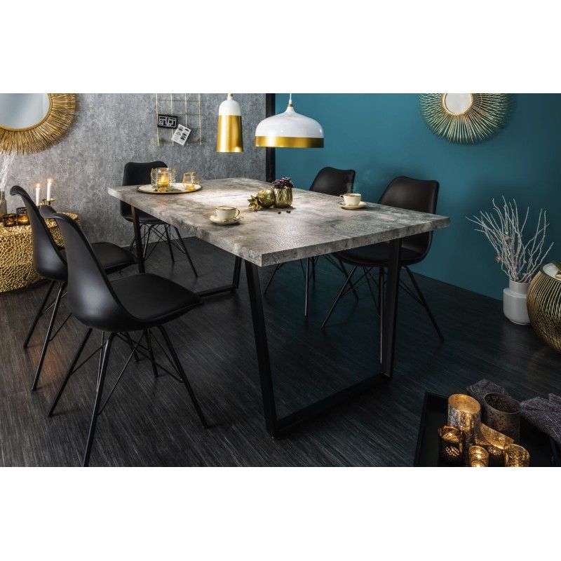 La table MERAX se distingue par ses lignes droites et son design équilibré. La combinaison du gris béton et du métal noir crée un contraste harmonieux, idéal pour une salle à manger à la fois élégante et conviviale. Son allure sobre et actuelle en fait un choix durable pour les amateurs de décoration moderne.