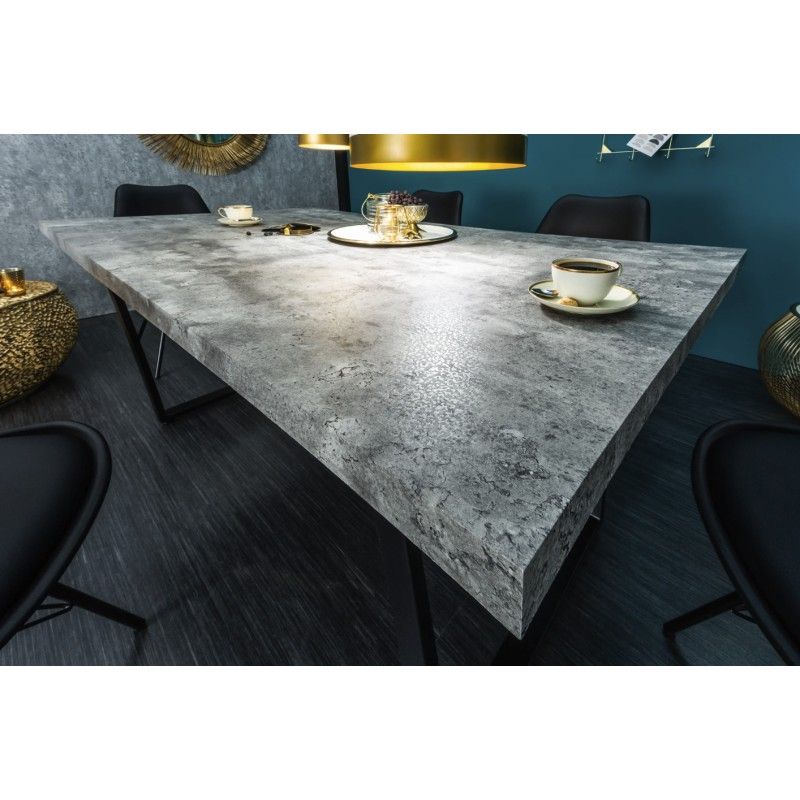 Grâce à son plateau épais de 40 mm et à ses pieds robustes, cette table assure stabilité et confort au quotidien. Sa finition effet ciment imite avec réalisme la texture du béton tout en restant douce au toucher. Facile à entretenir, elle combine esthétique et praticité pour accompagner vos repas en toute sérénité.