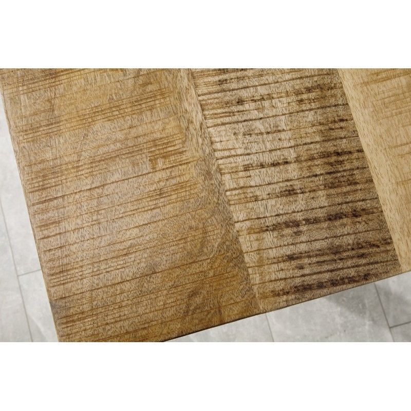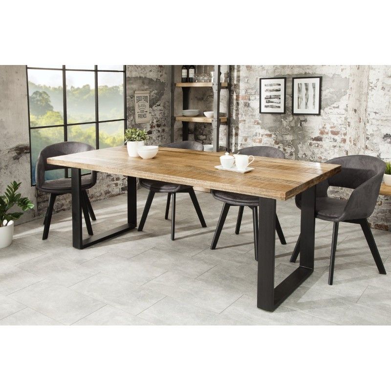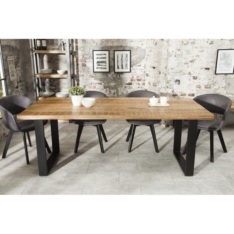 Grâce à son plateau épais de 45 mm et à sa structure métallique stable, cette table combine solidité et esthétisme. Sa finition naturelle met en valeur le veinage du bois massif tout en conservant son caractère brut. Avec ses pieds en U et sa grande longueur, elle offre un espace généreux pour accueillir vos convives en toute convivialité.