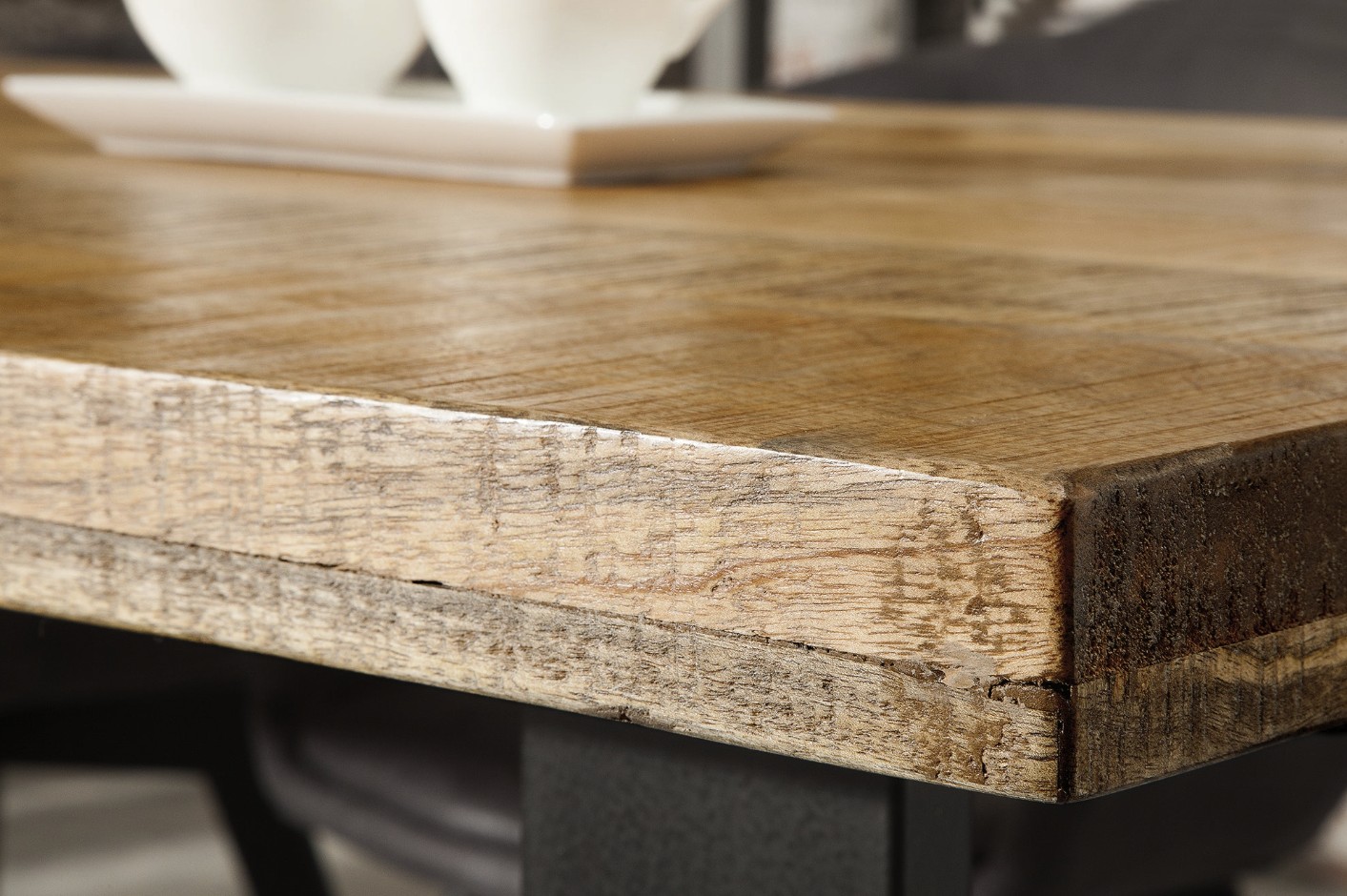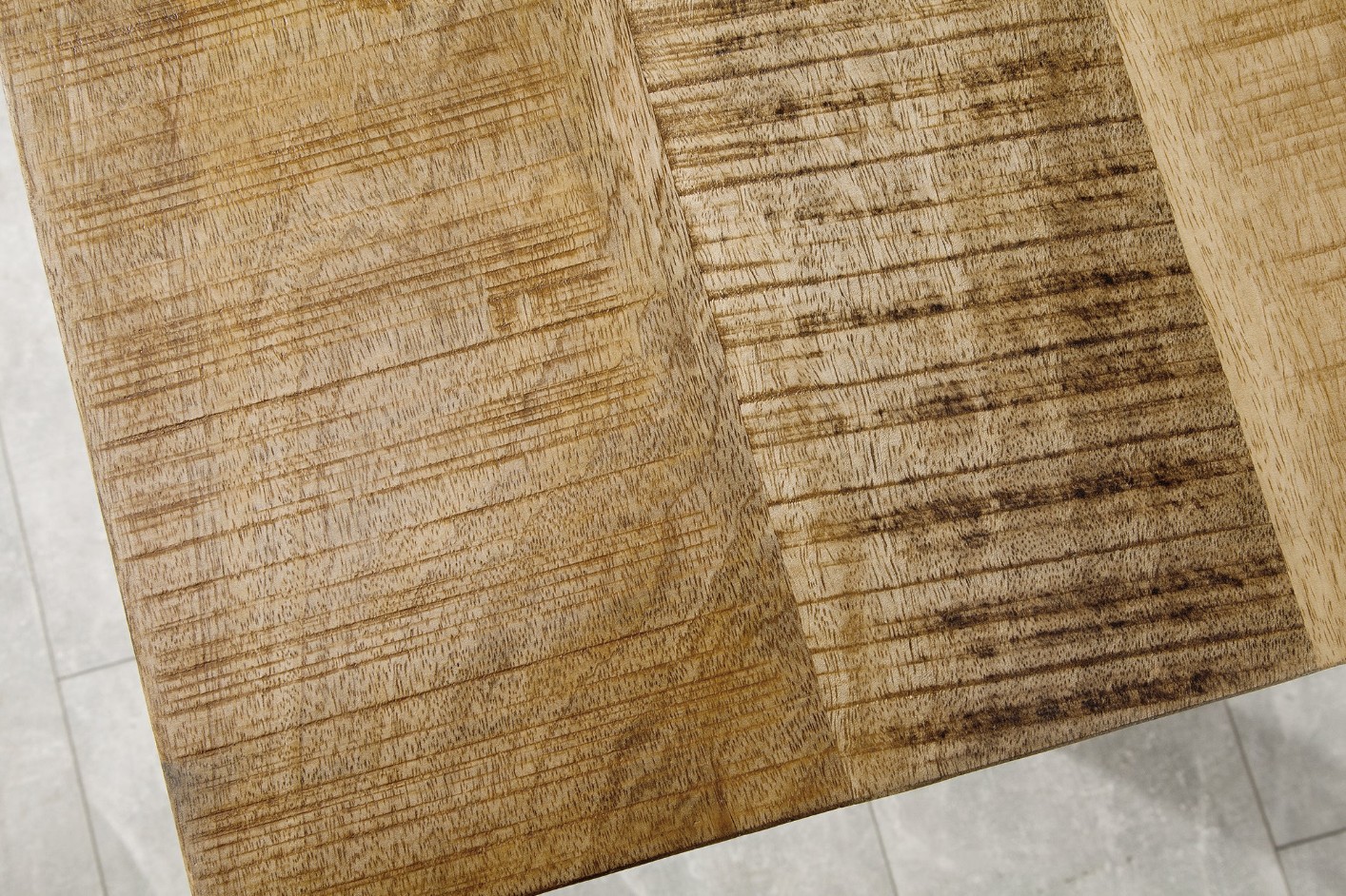 Meubles en planches de bois – Le design de ce meuble impressionne par son caractère particulièrement individuel et frappant. La surface en planches légèrement ondulées a été pourvue de marques de scie rustiques et rayonne d’un charme qui lui est propre. Les inclusions et les dégradés de couleurs plus foncées donnent à chaque meuble une touche individuelle supplémentaire : attendez-vous à une pièce vraiment unique !