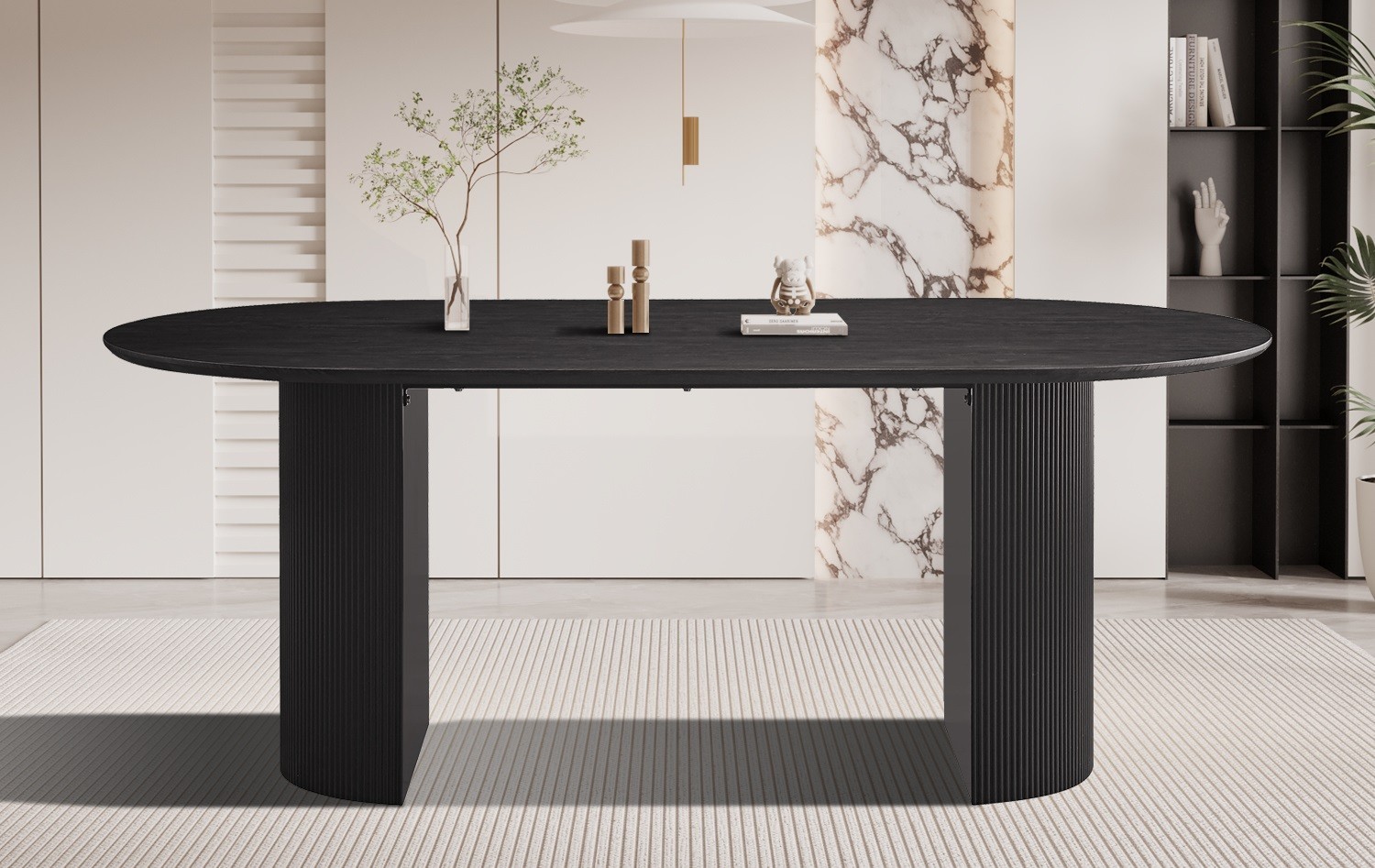 Ses dimensions de H76 x L200 x P100 cm offrent une capacité d'accueil de 8 personnes, idéale pour recevoir vos convives. Le design en bois massif et les pieds en métal de cette table ovale apportent une touche d'élégance et de modernité à votre salle à manger.