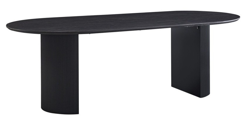 Ses dimensions de H76 x L220 x P110 cm offrent une capacité d'accueil de 8 personnes, idéale pour recevoir vos convives. Le design en bois massif et les pieds en métal de cette table ovale apportent une touche d'élégance et de modernité à votre salle à manger.