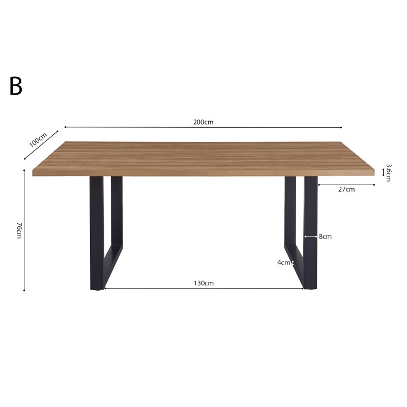 Ses dimensions de 200 cm de longueur, 100 cm de largeur et 76 cm de hauteur offrent une capacité d'accueil de 8 personnes, idéale pour recevoir vos convives. Le design en bois massif et les pieds en métal de cette table ovale apportent une touche d'élégance et de modernité à votre salle à manger.