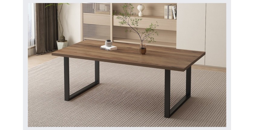 Ses dimensions de 200 cm de longueur, 100 cm de largeur et 76 cm de hauteur offrent une capacité d'accueil de 8 personnes, idéale pour recevoir vos convives. Le design en bois massif et les pieds en métal de cette table ovale apportent une touche d'élégance et de modernité à votre salle à manger.