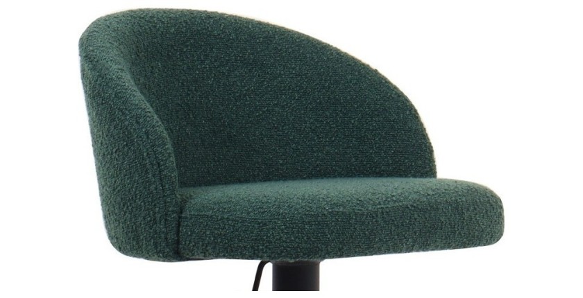 Le tabouret de bar HYDRA allie confort et élégance pour un intérieur au style contemporain. Son revêtement en tissu bouclé vert offre une assise douce et raffinée, parfaite pour un espace de vie tendance. Son piètement en métal robuste assure une excellente stabilité et une longue durée de vie. Grâce à son réglage en hauteur de 86 à 107 cm, il s’adapte parfaitement à différents comptoirs et îlots de cuisine.