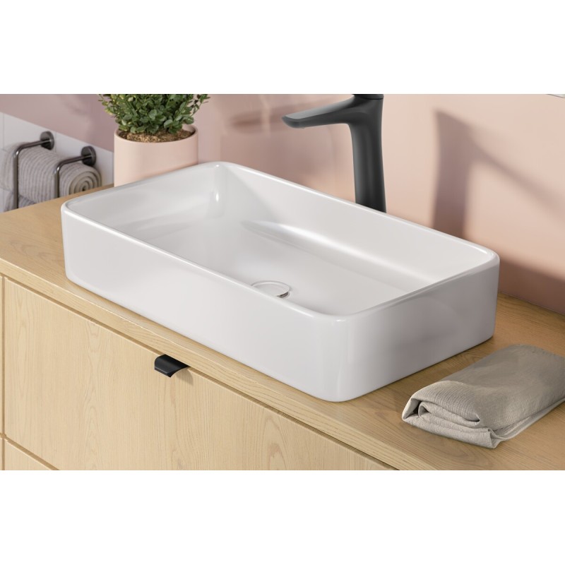 Avec ses dimensions généreuses de 61 cm de longueur, 34 cm de largeur et 11 cm de hauteur, elle offre un espace de lavage confortable tout en conservant une silhouette élégante et peu encombrante grâce à son design slim. Son installation à poser permet de la mettre en valeur sur un plan de toilette ou un meuble sous vasque. La robinetterie n’est pas incluse afin de vous laisser choisir le mitigeur adapté à votre projet.