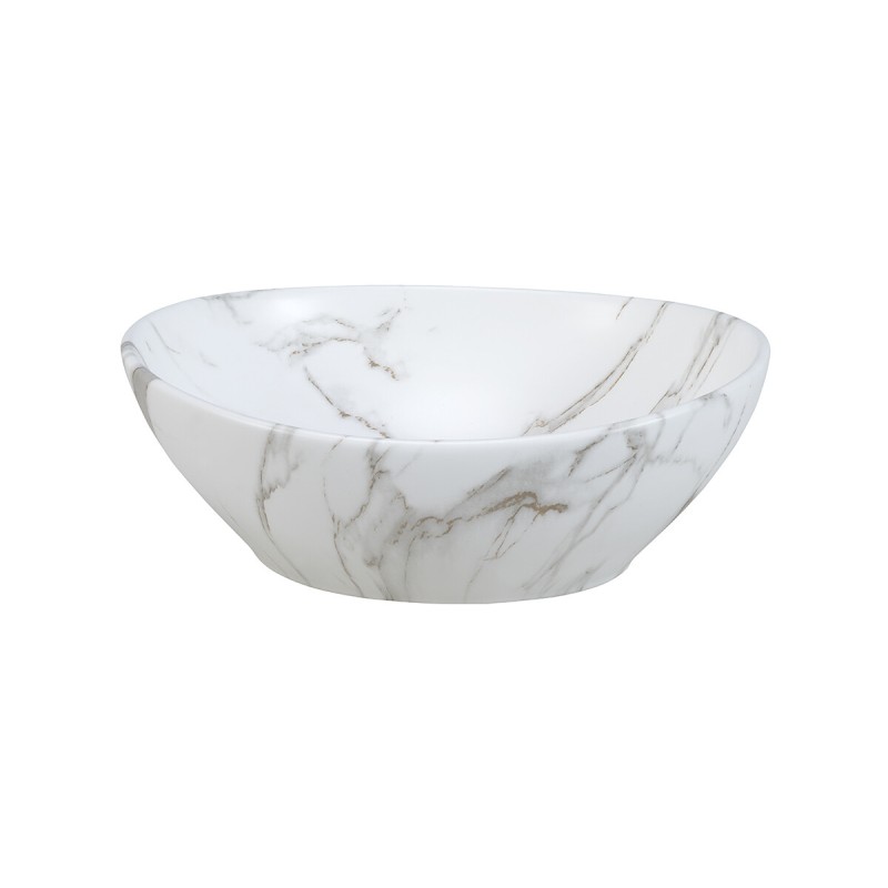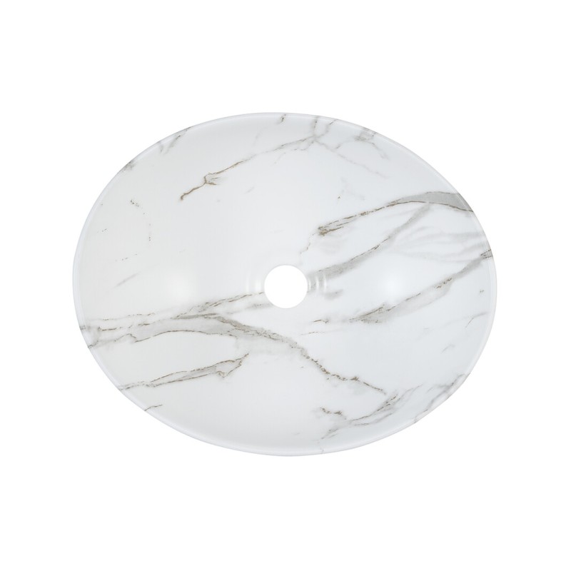 Apportez une touche d’élégance naturelle à votre salle de bain avec cette vasque à poser ovale 41x33 cm en céramique blanche effet marbre. Son décor délicatement veiné reproduit l’esthétique raffinée du marbre tout en bénéficiant des avantages pratiques de la céramique.