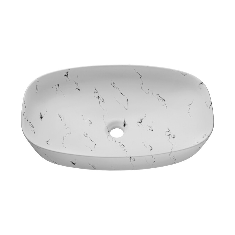 Apportez élégance et modernité à votre salle de bain avec cette vasque à poser ovale 60x30 cm blanc effet marbre. Son décor marbré subtil aux veinures délicates offre un rendu raffiné et intemporel, parfait pour créer une ambiance chic et lumineuse.