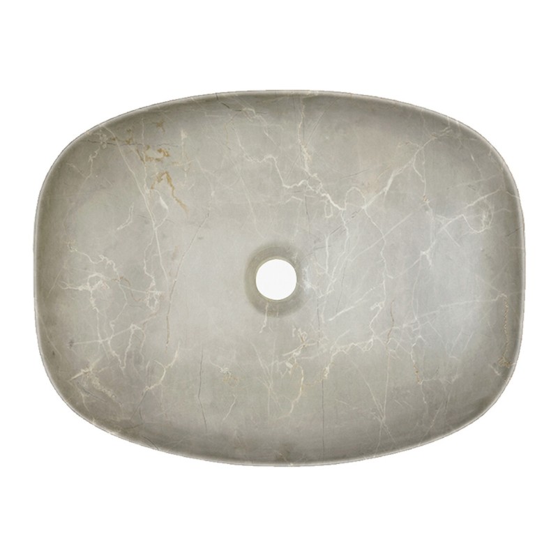 Apportez une touche naturelle et raffinée à votre salle de bain avec cette vasque à poser rectangulaire 50,5x38,5 cm en céramique effet pierre minérale. Sa teinte douce, située entre beige et gris clair, est sublimée par un veinage subtil qui imite parfaitement l’aspect de la pierre naturelle.