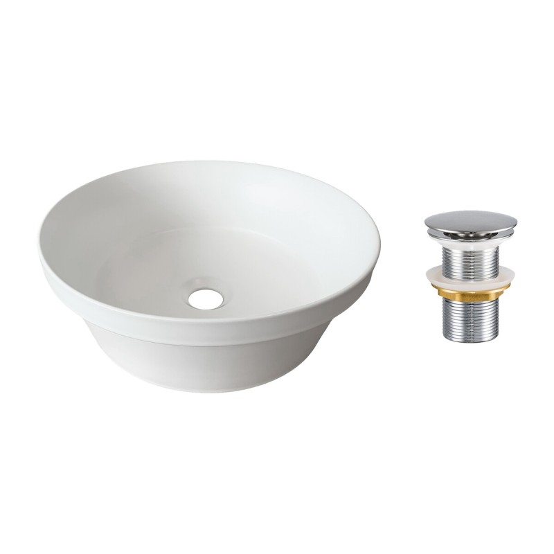 Sa forme ronde intemporelle associée à une finition mate lui confère un style minimaliste très tendance. La surface blanc mat offre un rendu naturel et élégant tout en limitant les traces visibles au quotidien. La bonde clic clac assortie complète l’ensemble avec un système d’ouverture simple et pratique par pression.