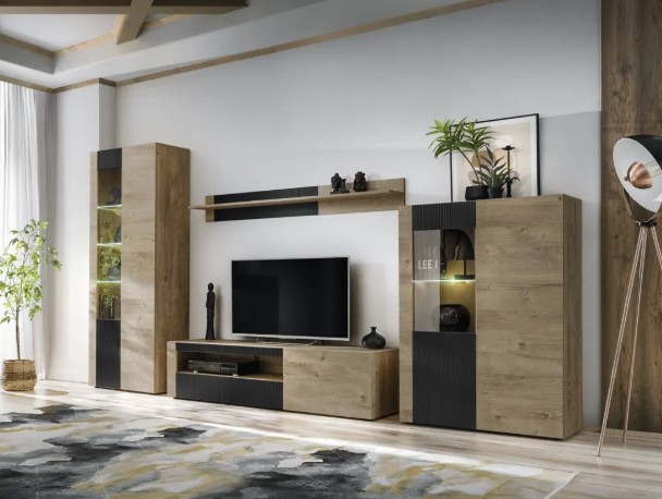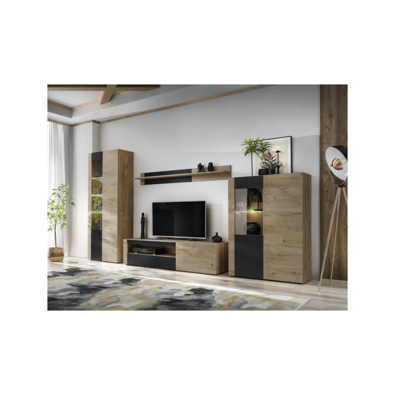 Apportez du caractère à votre intérieur avec la vitrine DOUM. Conçue en bois et métal, elle marie le charme chaleureux du chêne clair à la modernité du noir mat rainuré. Ses lignes industrielles affirmées s’associent à des finitions de qualité pour un meuble aussi esthétique que pratique.