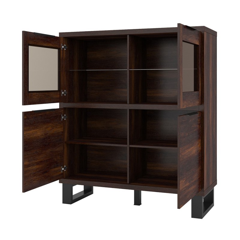 - CARACTÉRISTIQUES : Bahut partiellement vitré, Grand espace de rangement grâce à ses 2 portes et ses nombreuses étagères.