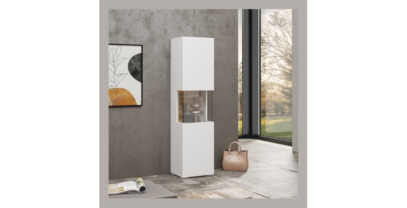 - CARACTÉRISTIQUES : Grand espace de rangement grâce à ses nombreuses étagères. Meuble composé d'une porte partiellement vitrée. Possibilité de configurer la porte avec ouverture vers la gauche ou vers la droite.